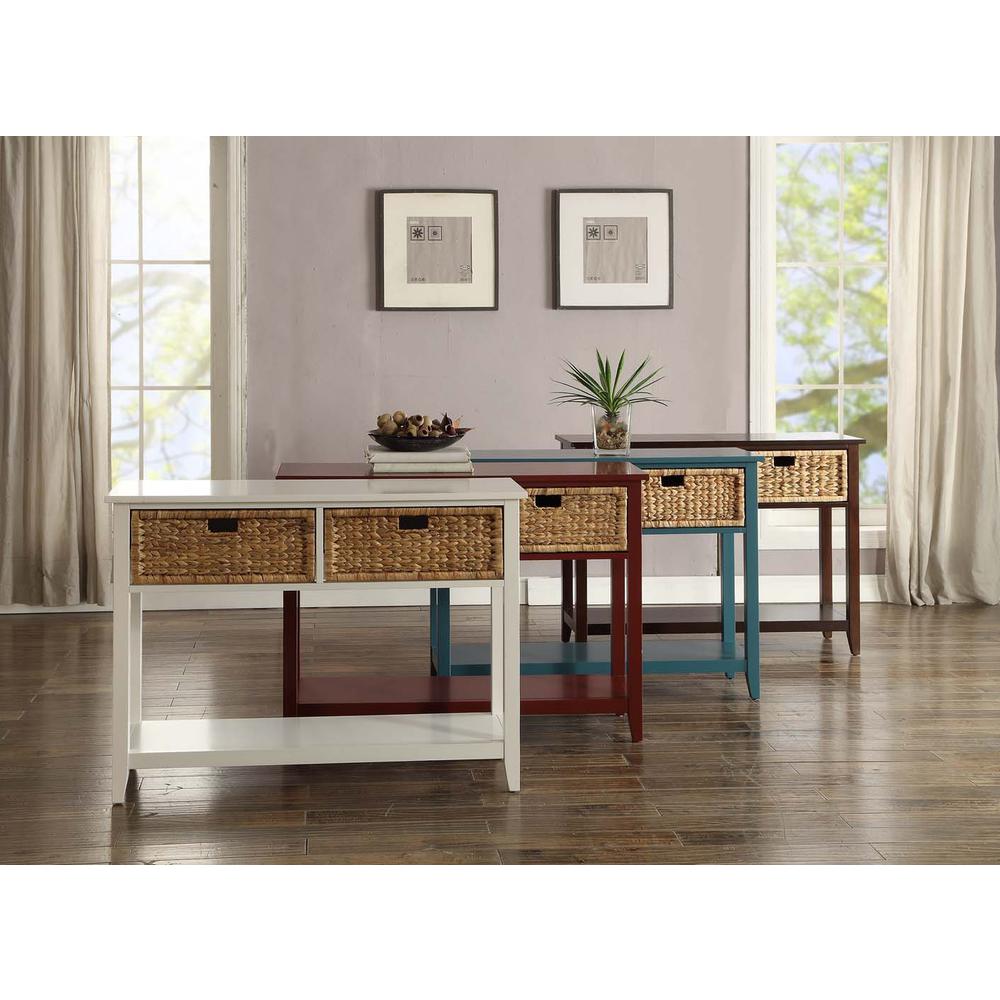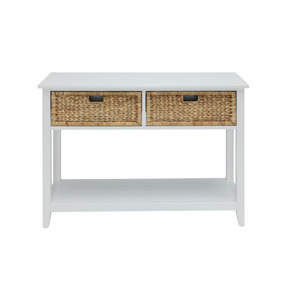 Flavius Console Table with 2 Drawers White – Saltoro Sherpi Console tables are mean to remove all the clutter of room and place it in an organized way this royal looking console table will do the same for you. This console table is made up of solid wood and thus will serve you for long. This console table comes with 2 drawers in basket design pattern and one bottom shelf. Drawers assembly will be required.