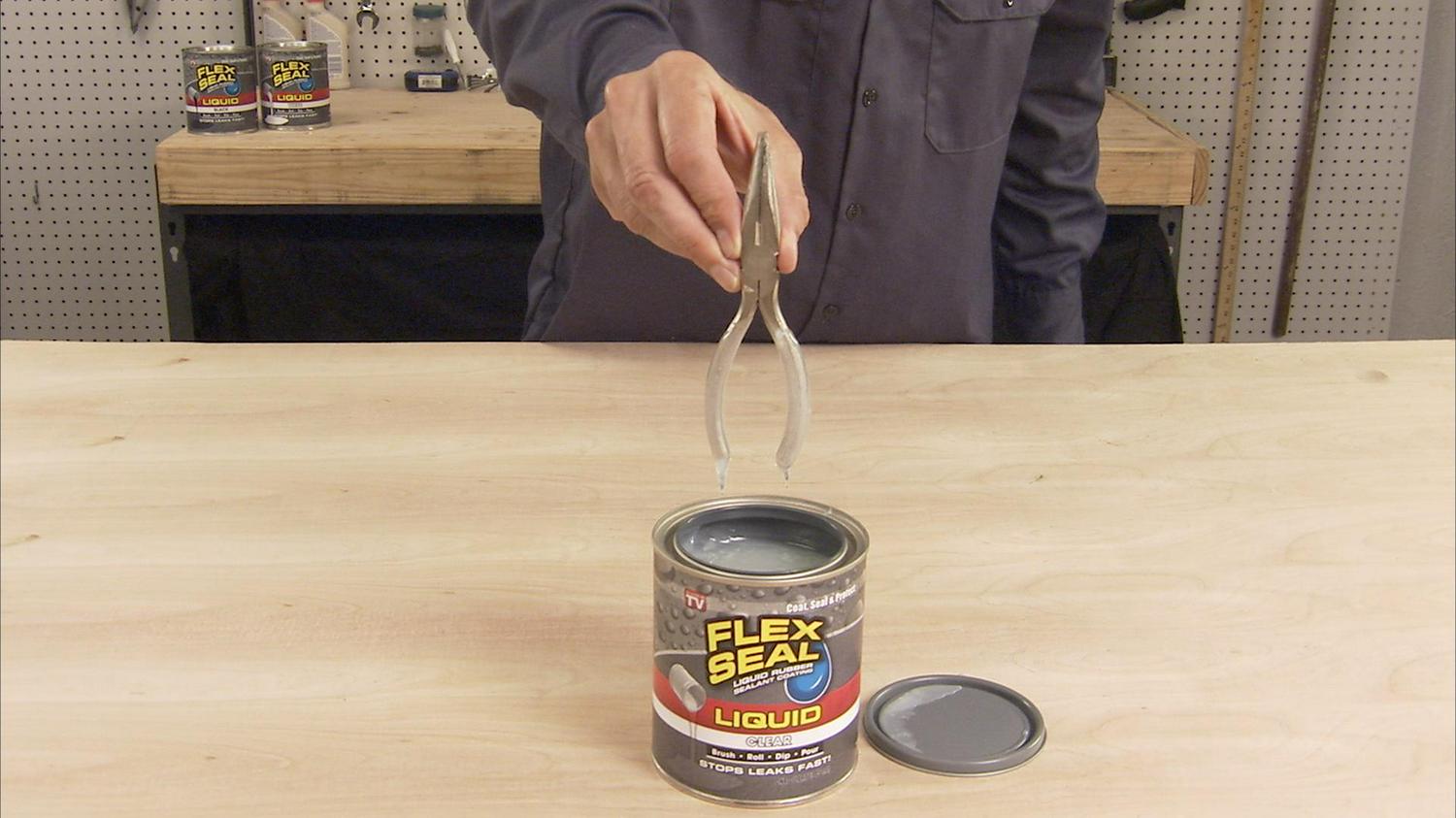 - Flex Seal Liquid is liquid rubber in a can. Now you can brush, roll, dip or pour it on