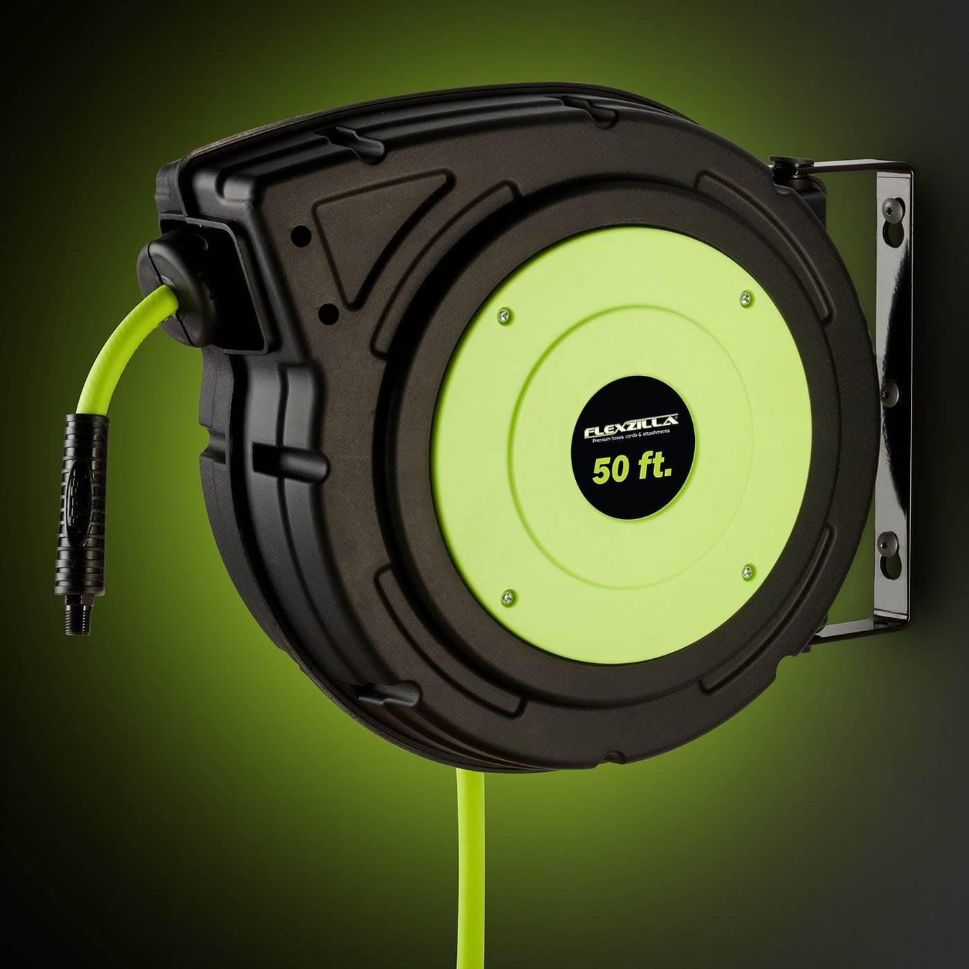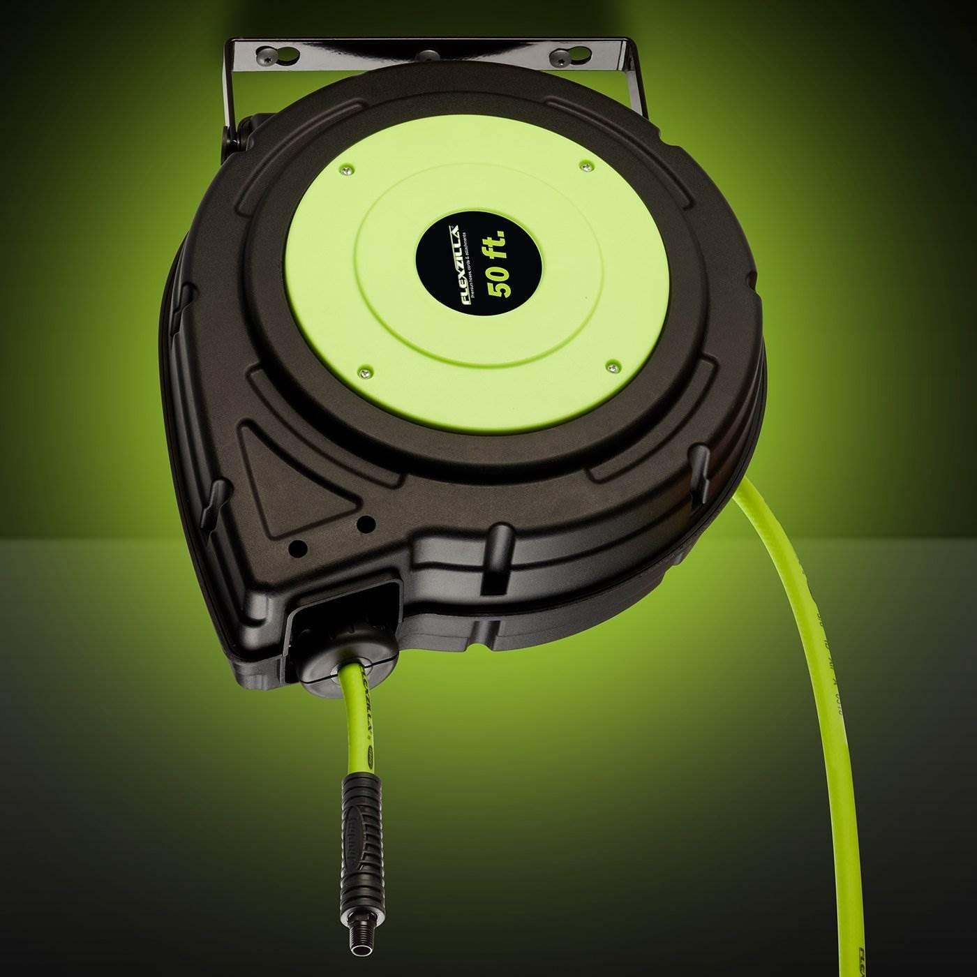 Flexzilla 50 ft. L X 3/8 in. D Hybrid Polymer Retractable Air Hose Reel 150 psi Zilla Green