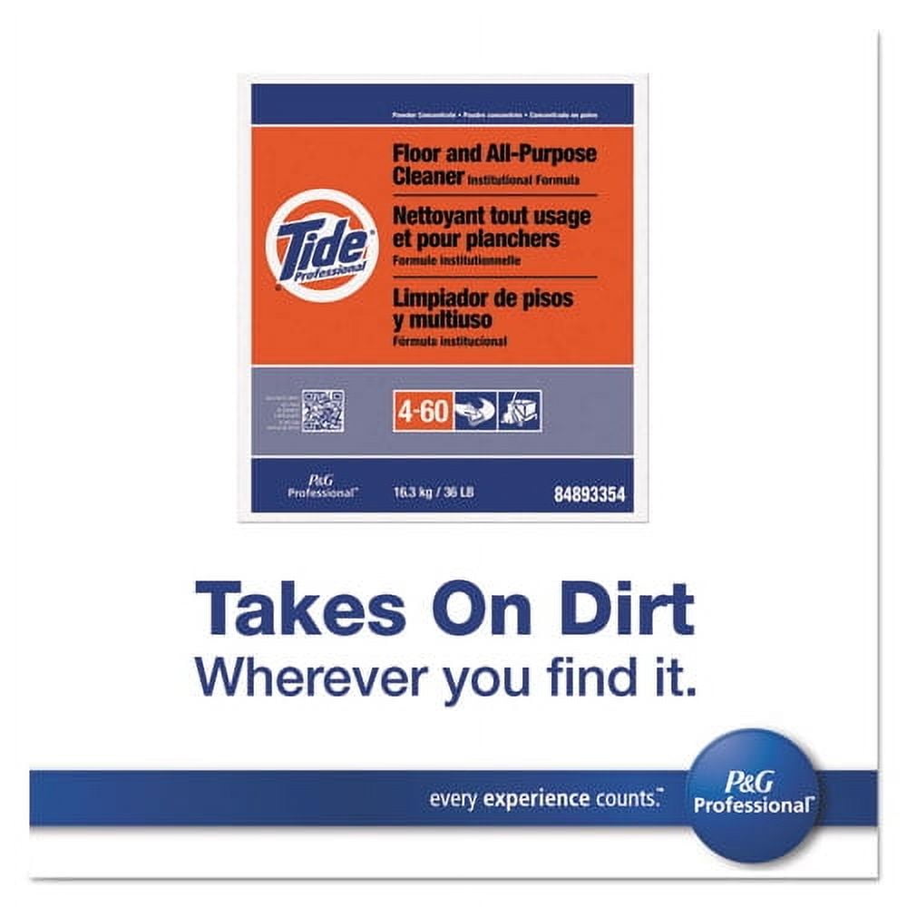 Tide Professional Floor and All-Purpose Cleaner: High levels of surfactant and builders combined to cut through tough grease Easy-rinse powder formula is ideal for quarry tile Cleans floors, walls, pots and pans Professional floor cleaner can be used with chlorine bleach and contains no phosphates Concentrated cleaning powder Package weighs 36 lbs