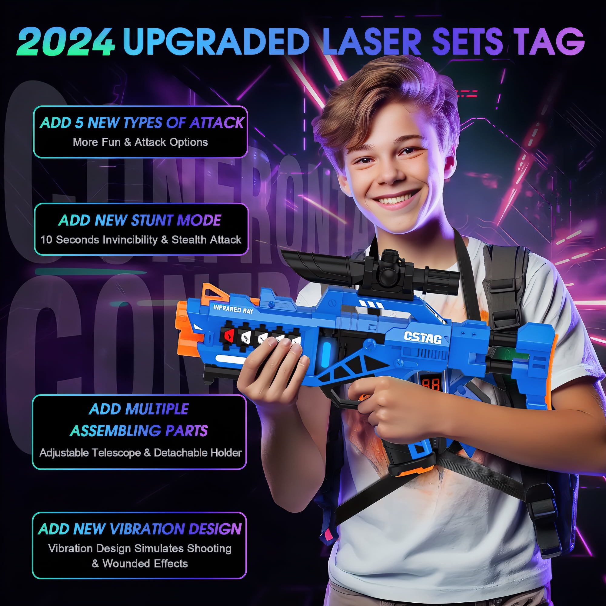 🔫【Arcade Style Lazer Tag Game】🔫-Turn your home or backyard into a shooting tag arena with the tag blaster set,this fully interactive set designed with infrared receivers and light emitters that are fun and reduce the chance of injury. ❤️【Long-Distance Game】❤️-These infrared tag set blasters have an impressive 150-foot range and are fun to play with both indoors and outdoors. 💚【Lights & Sounds】💚- Each mode produces corresponding sounds, while target vests light up in response to indicate each players’ health. 🤍【Cool Group Activity For Friends & Family】🤍- Up to 4 teams (White, Blue, Red, Green), the possibilities are boundless – expand the thrill by adding more sets for unlimited players. 🩵【Create Wonderful Memories For Your Kids】🩵-Parents and children can enjoy endless happiness with this tag set for kids after school, on weekends or holidays. It is thrilling moments and dreamy family memories. Tag set for kids is the best gift for your boys and girls.