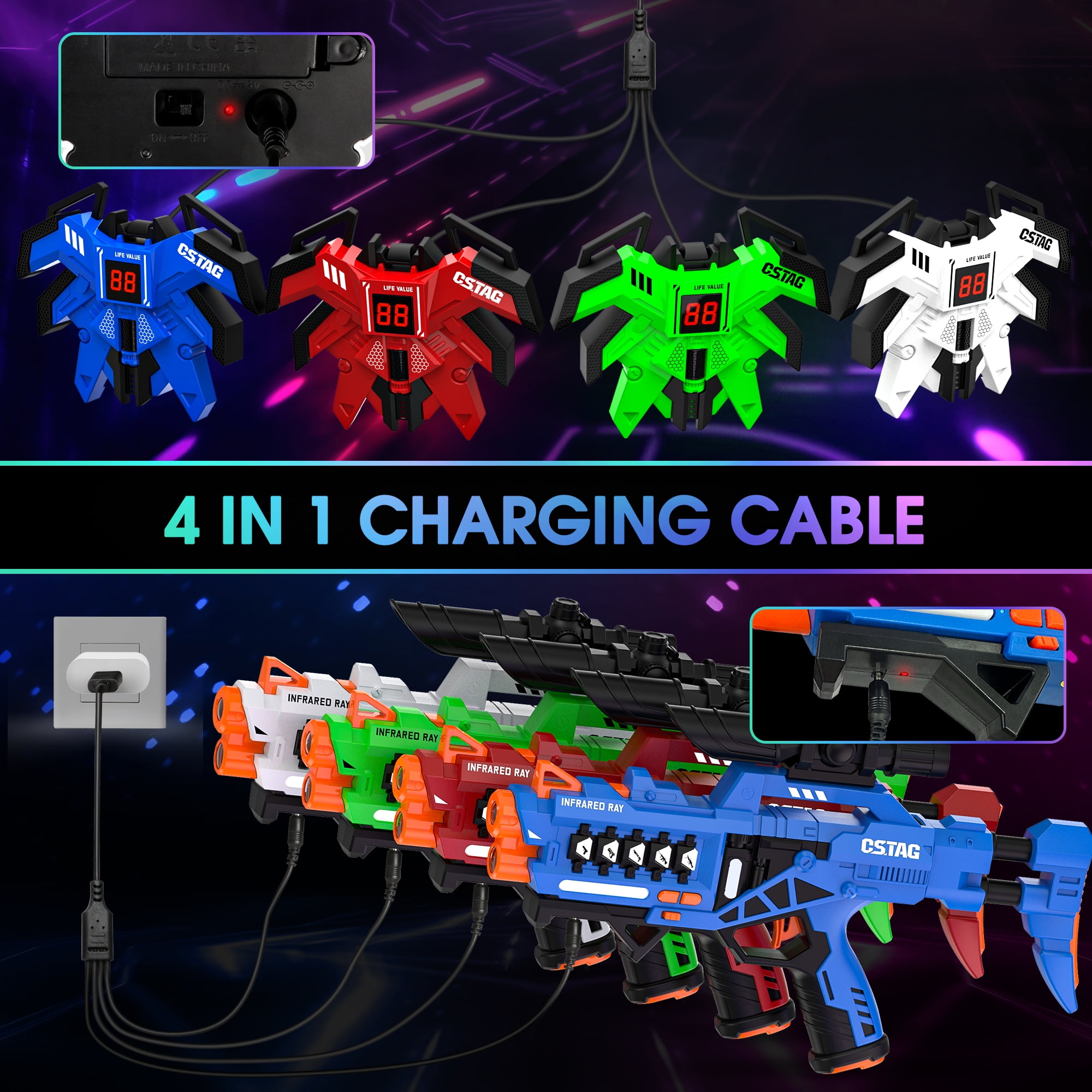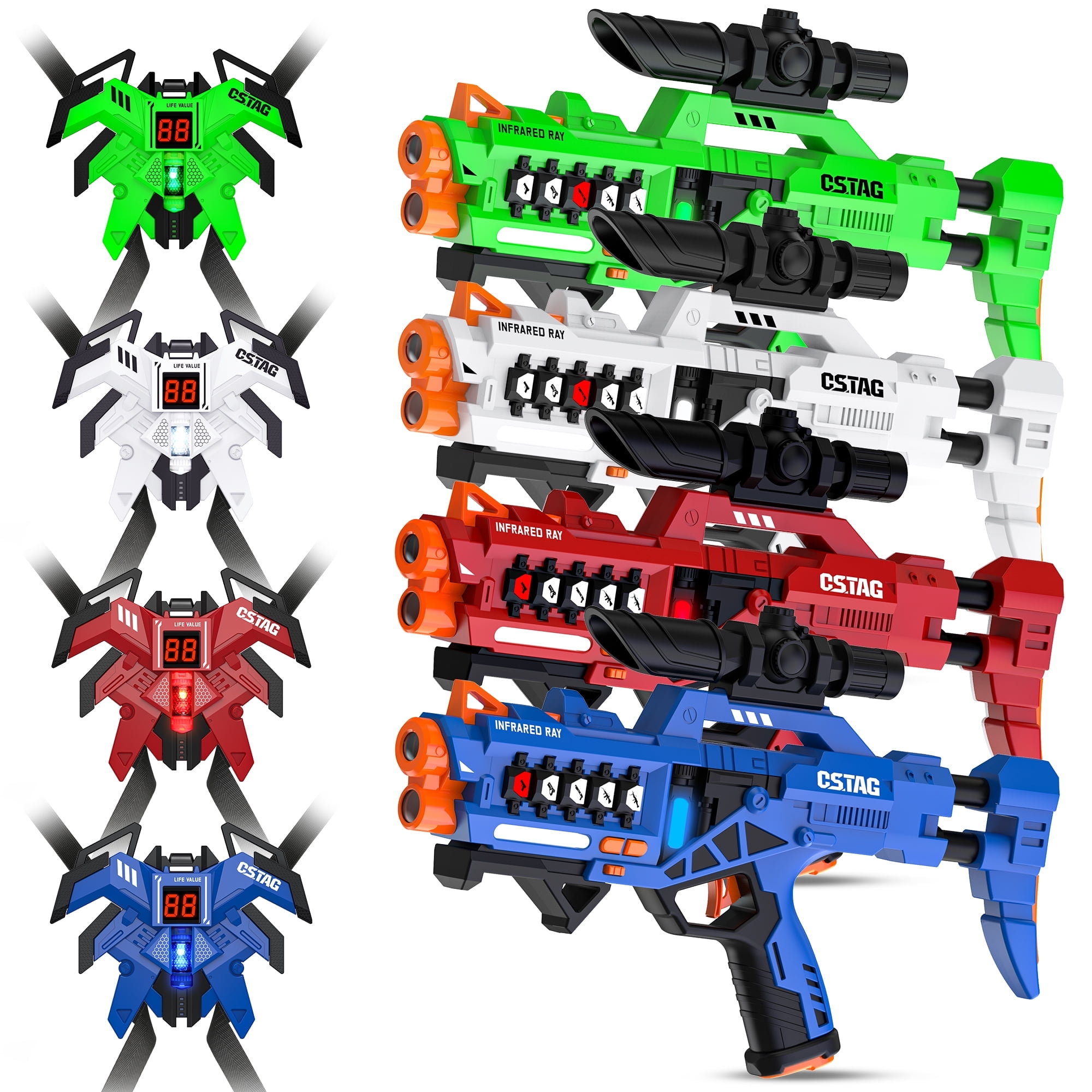 Flooyes Shooting Tag Game, Set of 4 Tag Blasters & Vests, Infrared Indoor&Outdoor Toys Set Gift for Teen Boys & Girls, Adults and Family, Ages 8+