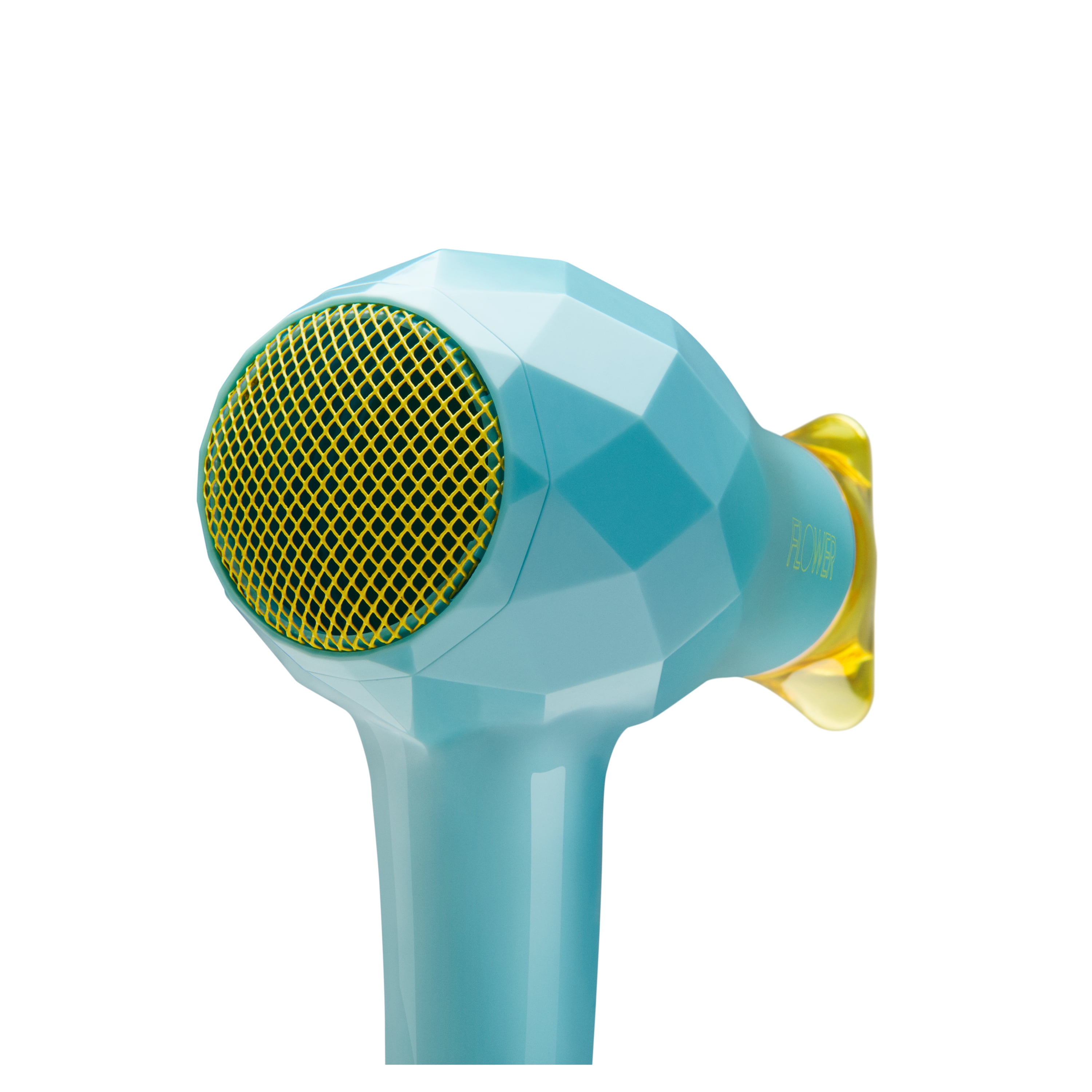 TINY BUT MIGHTY The technology on this perfect little dryer was designed by aerospace engineers. Its turbine fan has thinner and lighter blades that create a compressed and concentrated airflow, which rapidly drives the water from the hair strands, while retaining the hair’s natural moisture. The result is healthier, shinier, lustrous hair anywhere in the world. YOUR PERFECT TRAVEL COMPANION I wanted a dryer I could take anywhere. With its compact design and dual-voltage this is my favorite, portable blow dryer I hope youâll love it for carry-on, gym bag, or hotel/dorm room. HEALTHIER DRYING IN A COMPACT SIZE The Flower Travel Dryerâs tourmaline ceramic technology ensures evenly distributed heat and generates powerful ions to dry fast and deliver your most healthy, shiny, frizz-free hair.