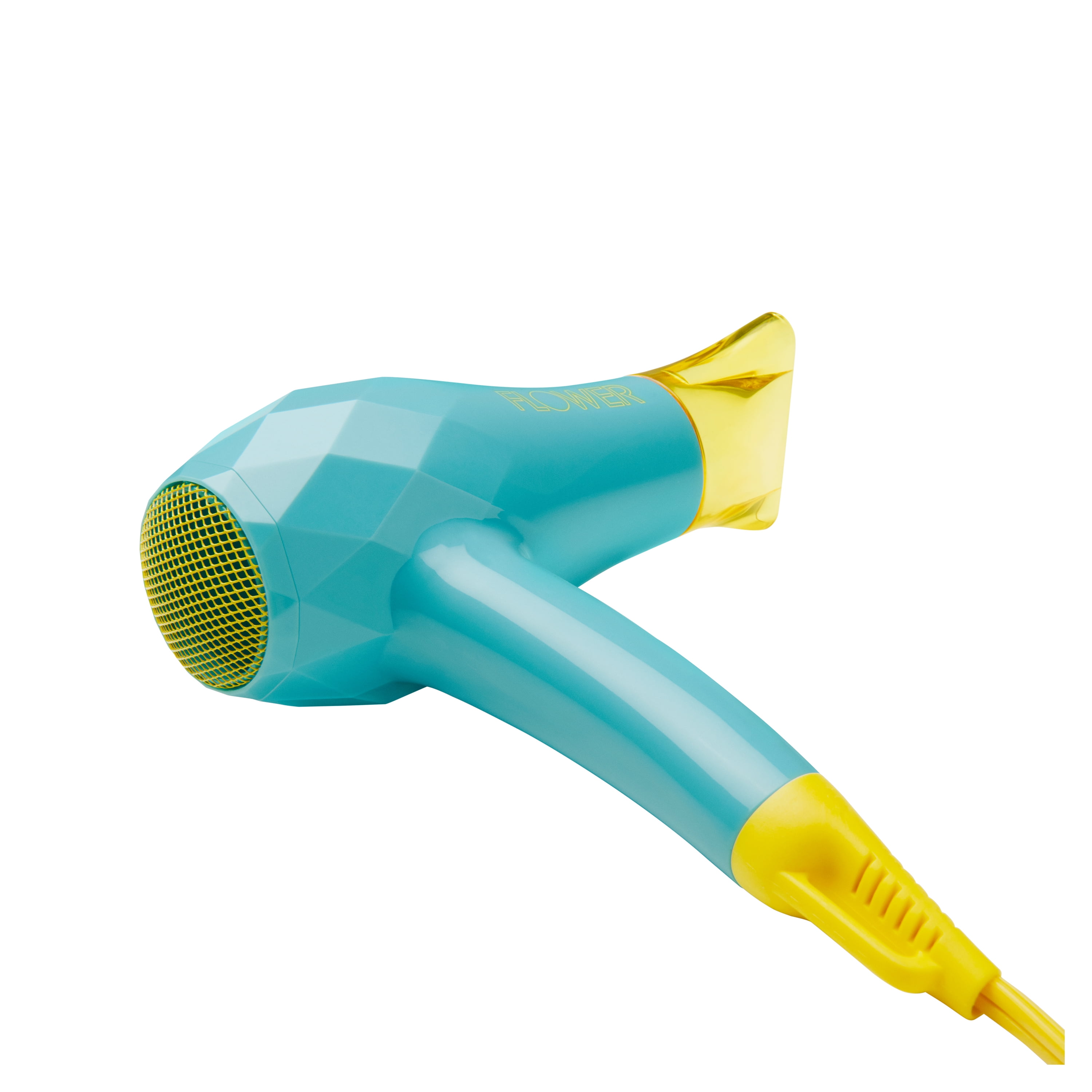 FLOWER Travel Size Mini Ceramic & Tourmaline Ionic Hair Dryer with Concentrator, 1000 Watts, Blue