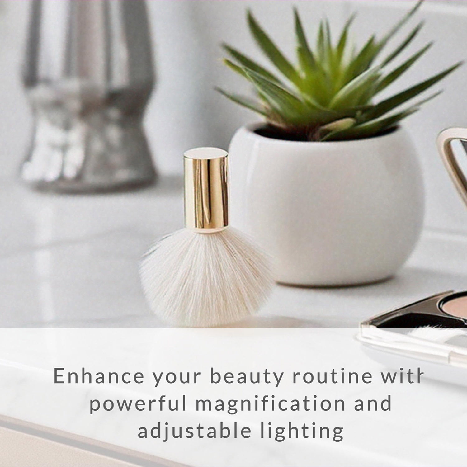 LIGHTED MAGNIFYING MIRROR – Lighted personal makeup mirrors are a must have in any bathroom. Bright LEDs with 2 lighting modes let you see clearly to apply makeup, tweeze brows, shave, and much more. 15X COMPACT MIRROR – Powerful 15x magnifying mirror with lights has bright LEDs, so you see the smallest details. Distortion-free DFP 6-1/2″ glass mirror with lights on stand provides a super clear image. MAGNIFYING TRAVEL MIRROR – The small magnifying mirror is the ideal travel makeup mirror with lights and magnification because the mirror detaches and it folds flat to easily fit in your suitcase, makeup case, or carry-on bag. LIGHTED SHAVING MIRROR – Not just for women, men will love this magnified mirror with lights for shaving, especially in poorly lit bathrooms or at the gym. The compact size means it can go where other magnifying mirrors can’t. DETAILS – Mirror detaches and folds flat for travel. Use with included adapter or with 4 AA batteries (not included).