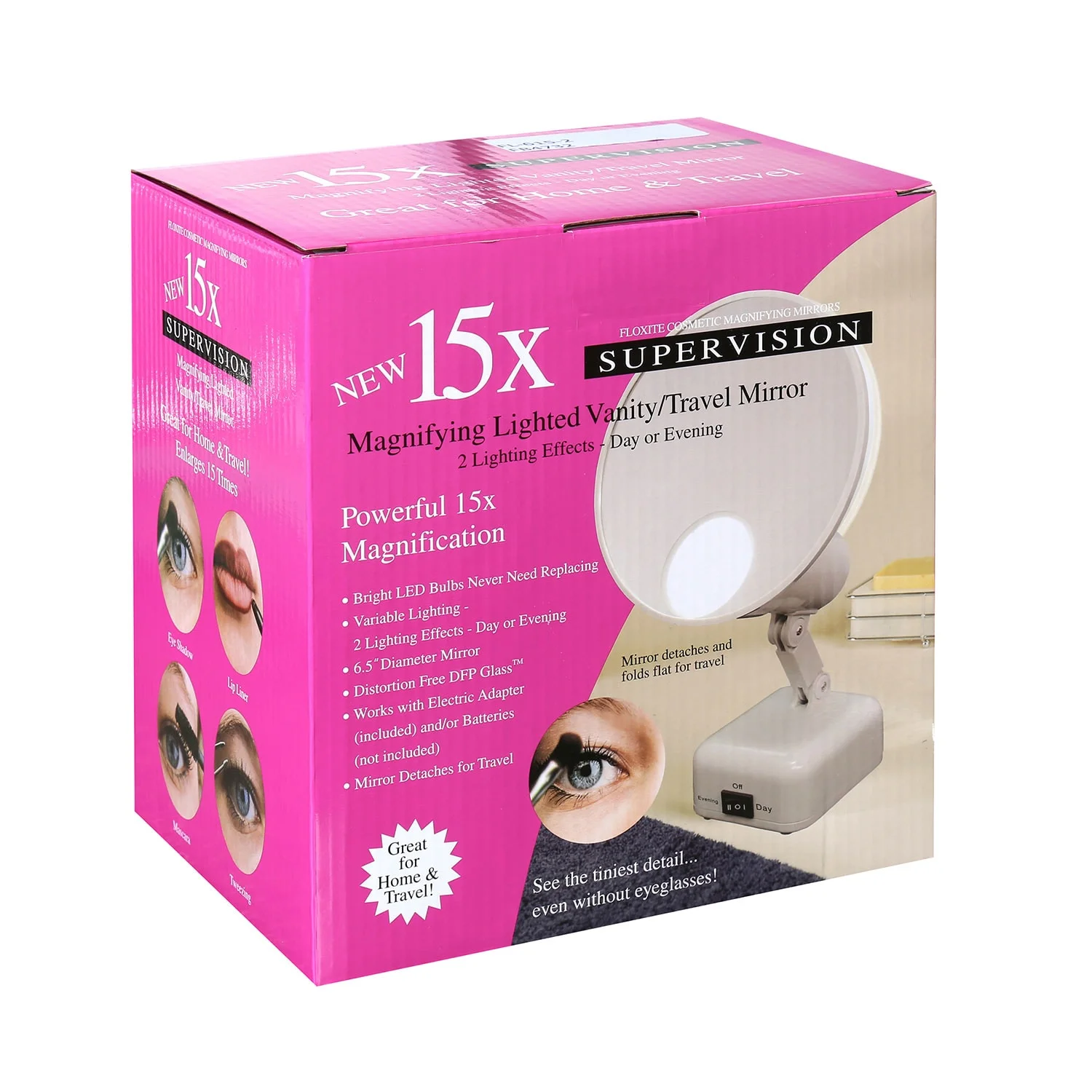Floxite 15X Supervision Magnifying Mirror Light Dove White LED Lightning
