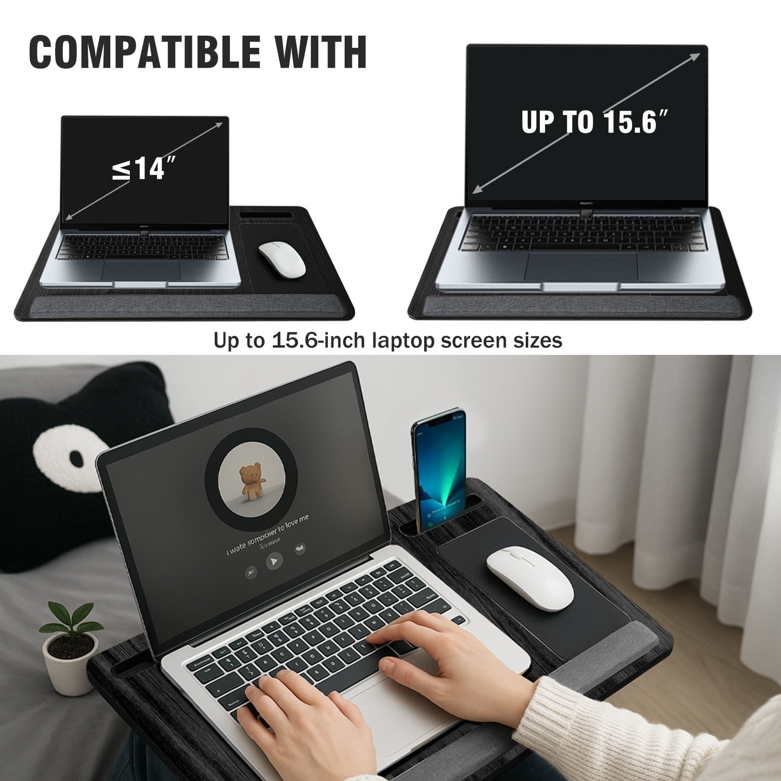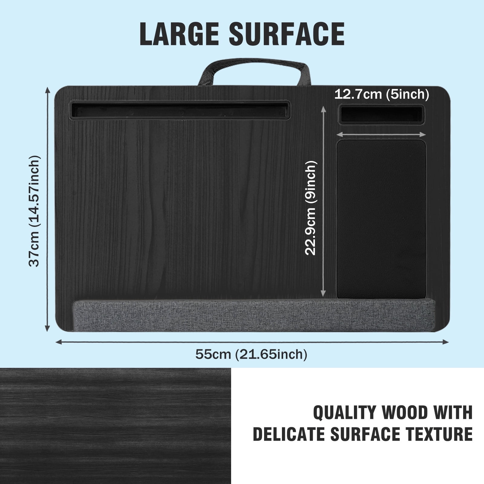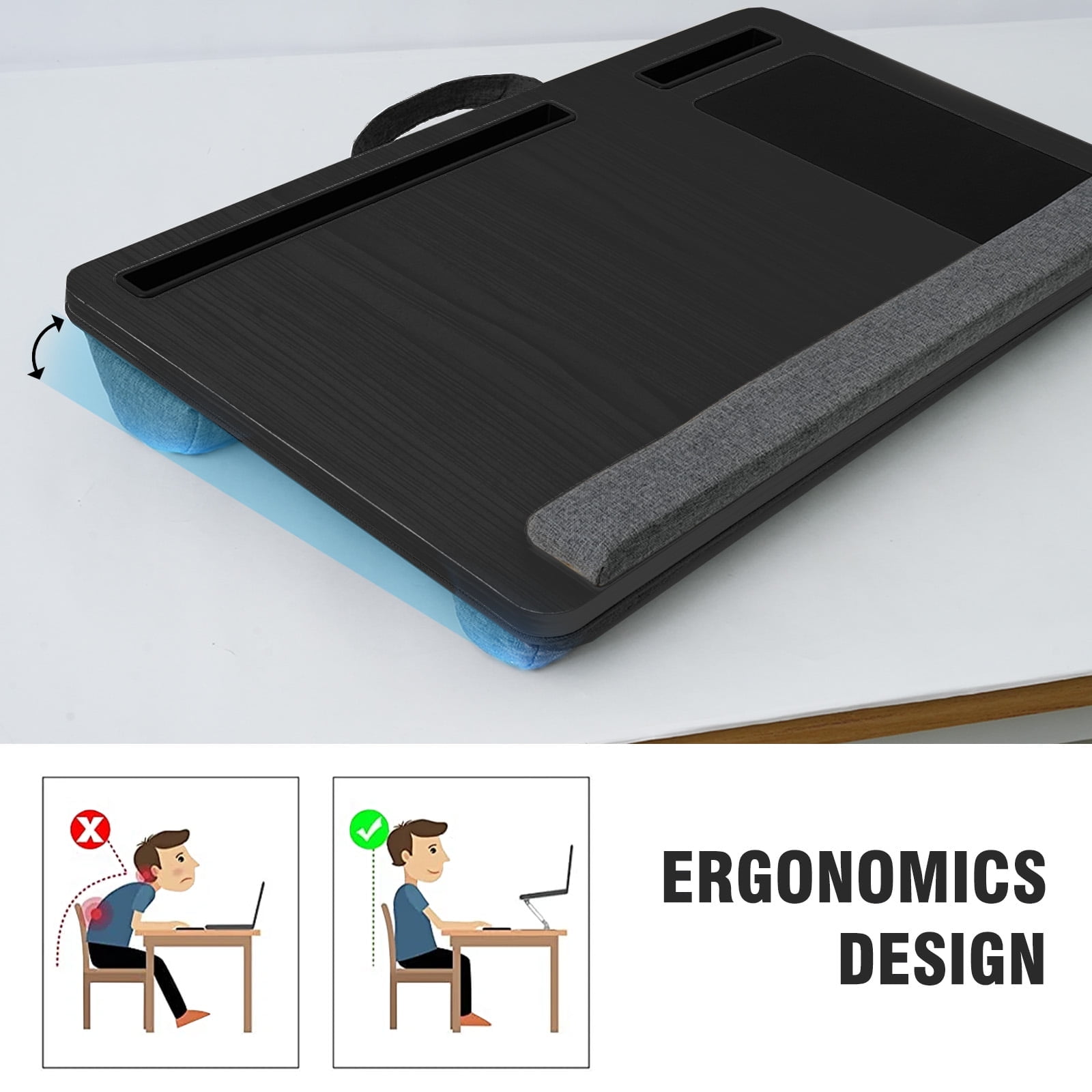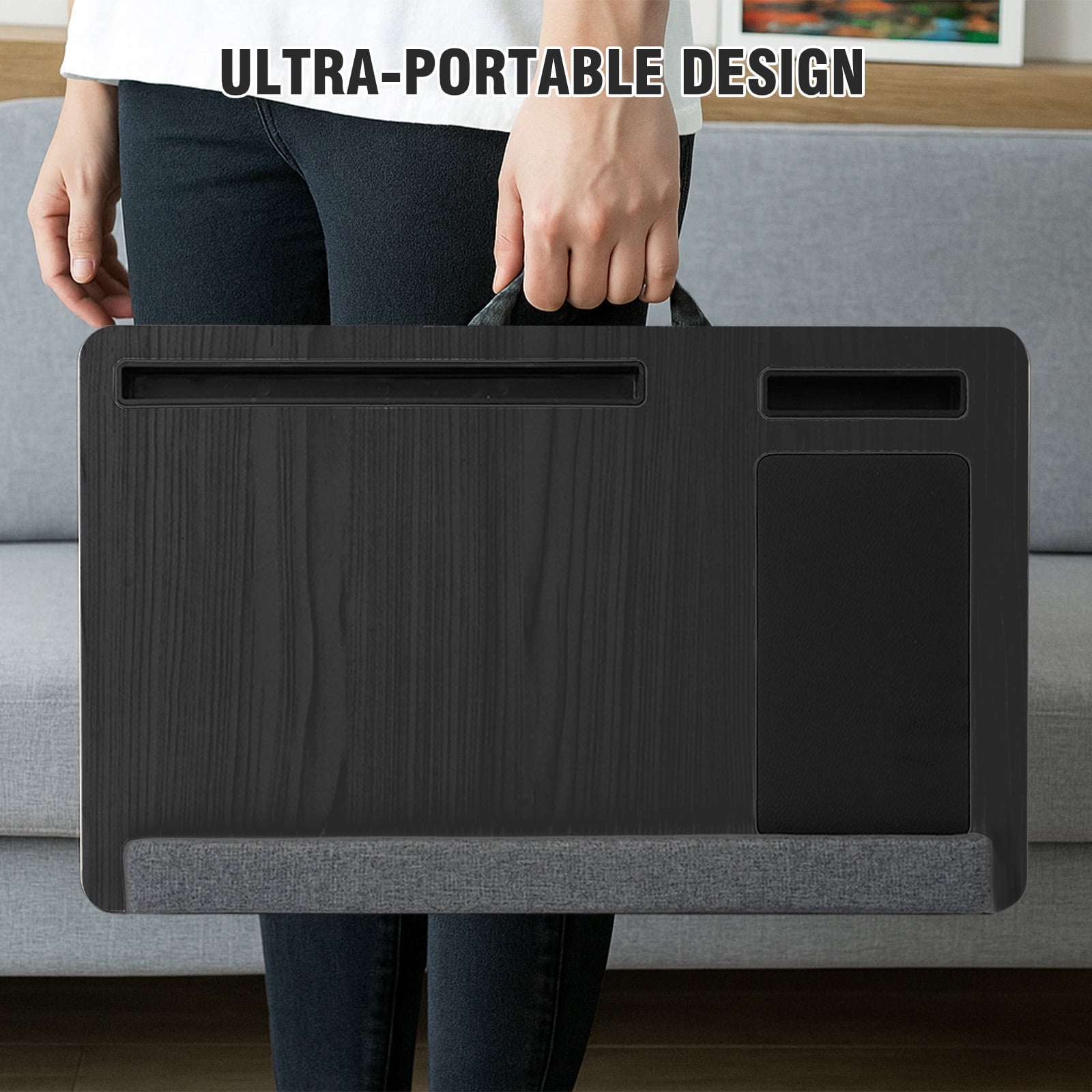 CATGOOD Portable Lap desk, Laptop Desk with Pillow, Wood Lapdesk Bed Table with Soft Pillow, Mouse Pad & iPad/Phone Slots, Fits up to 15.6 inches, Black