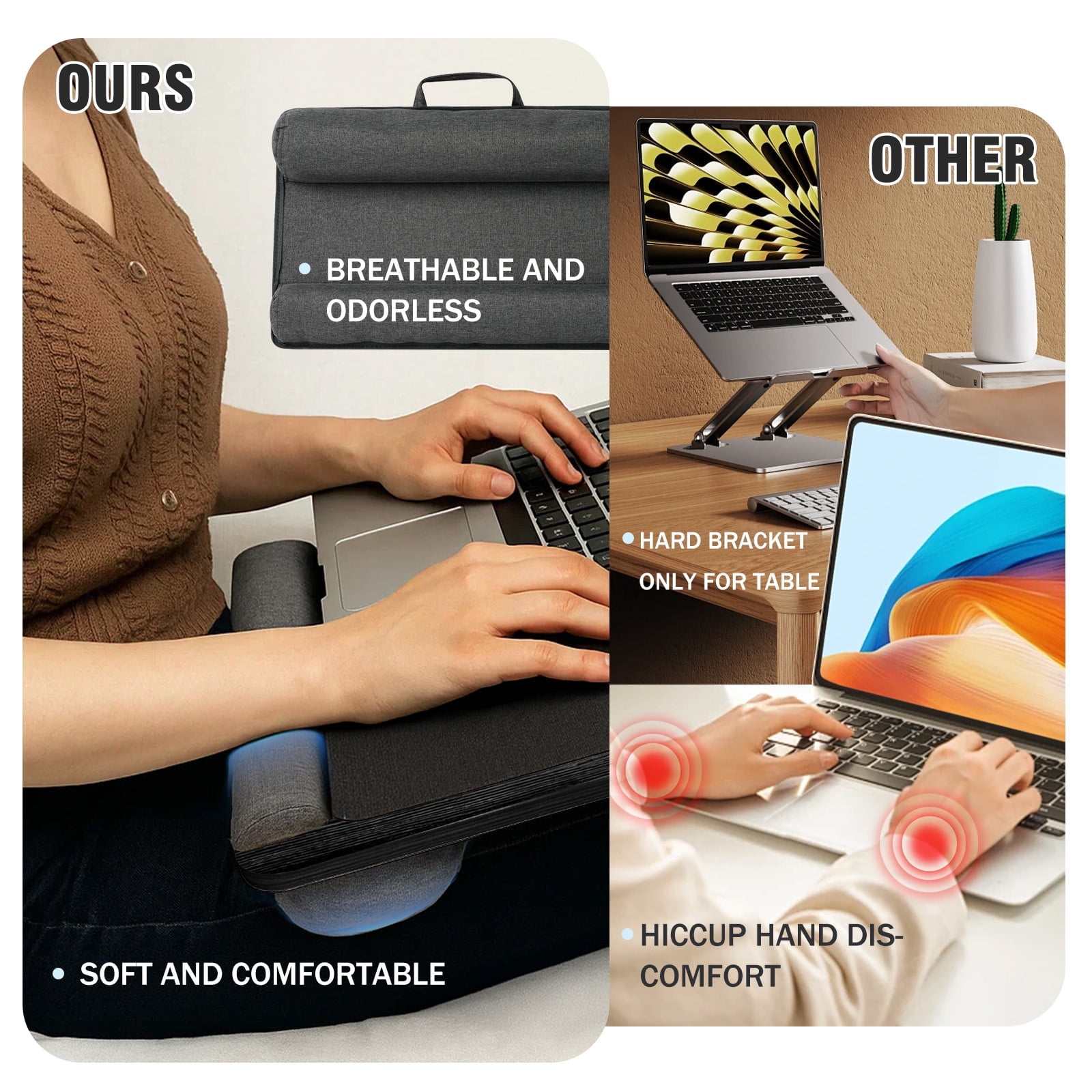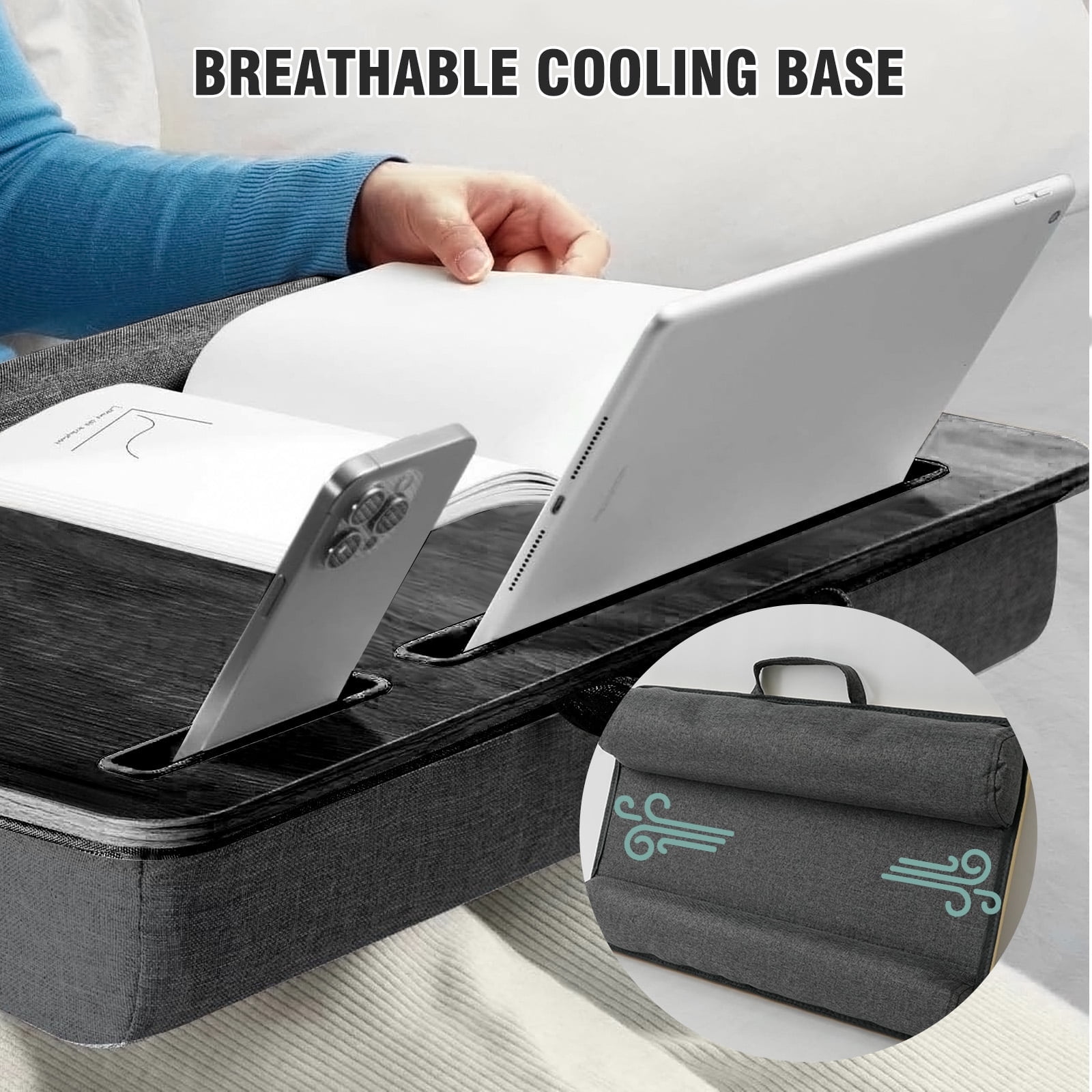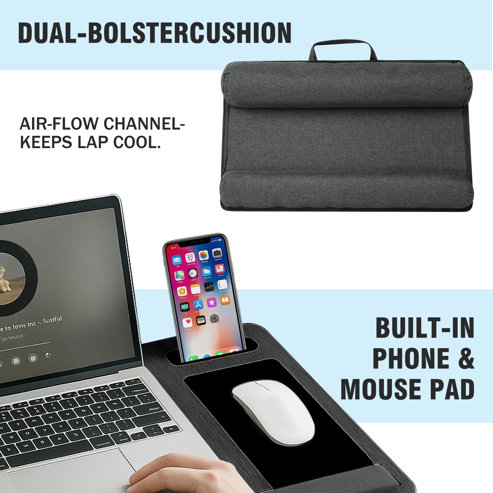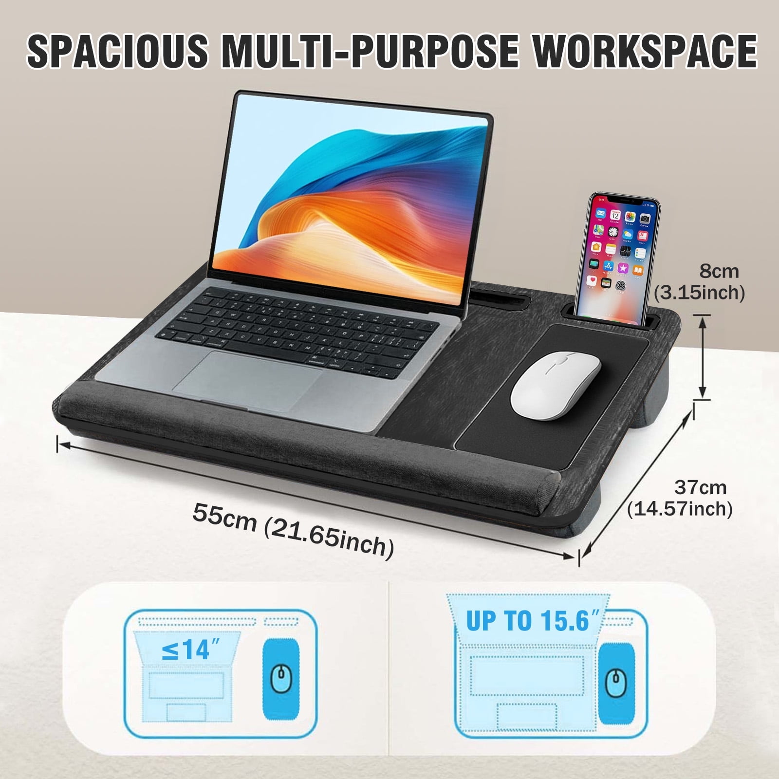 CATGOOD Portable Lap desk, Laptop Desk with Pillow, Wood Lapdesk Bed Table with Soft Pillow, Mouse Pad & iPad/Phone Slots, Fits up to 15.6 inches, Black