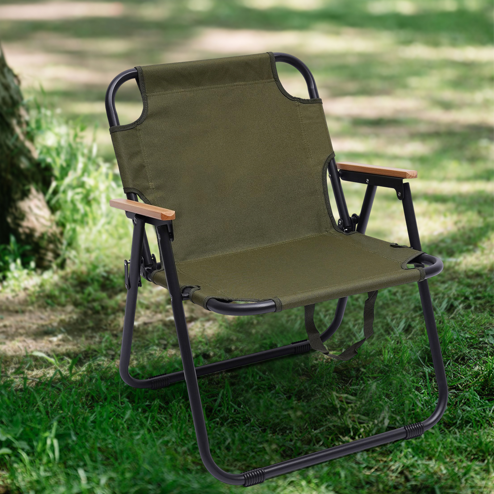 Folding Portable Camping Chair Metal Frame and Fabric Outdoor Chair for Patio Lawn Lounge Green