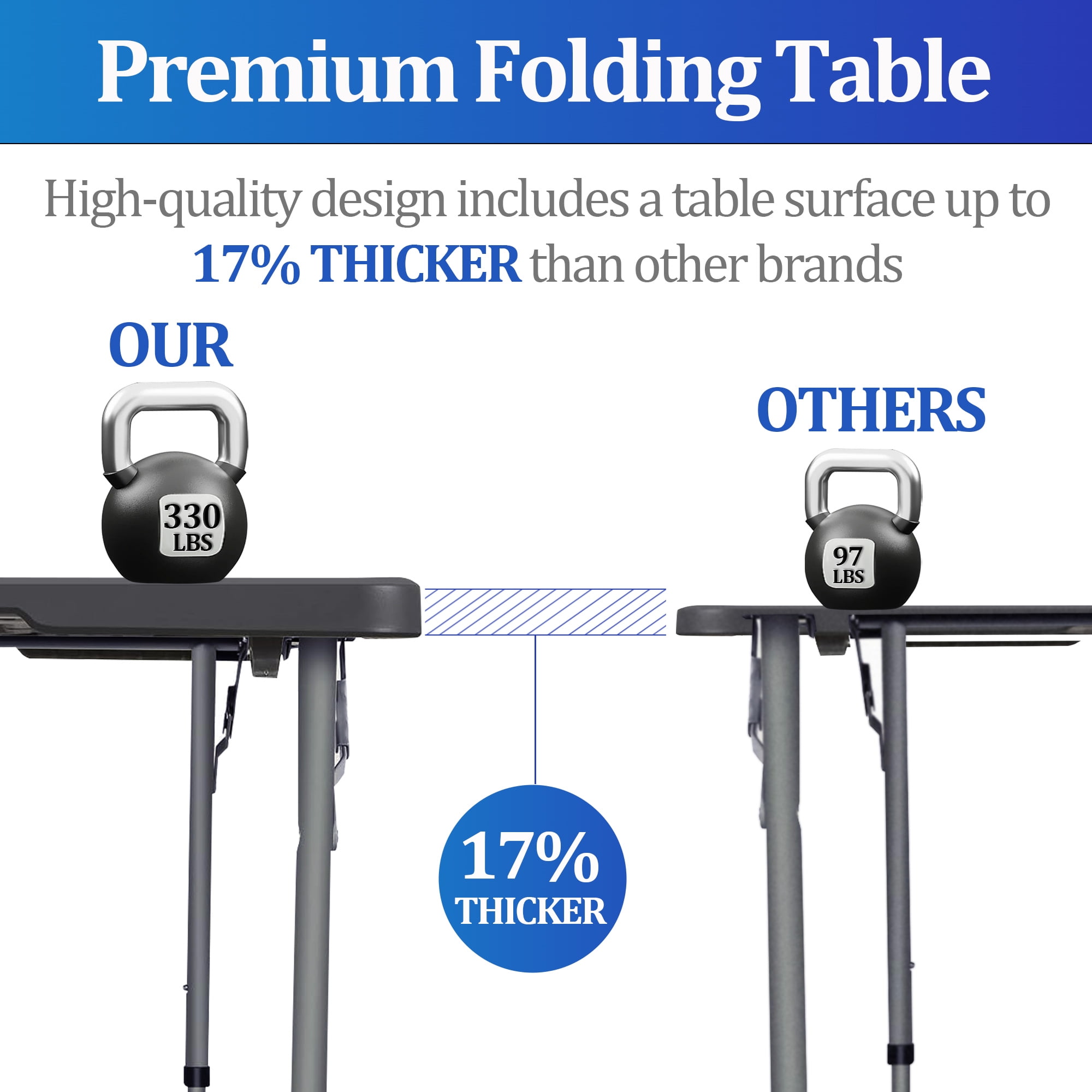 UNRIVALED DURABILITY – Elevate your outdoor experience with our 4 Foot Folding Table, boasting a robust 330 lbs capacity. Crafted with waterproof, heat-resistant HDPE top and solid steel legs, this table is an investment in lasting quality and performance. EFFORTLESS ASSEMBLY – Ready to transform any space at a moment’s notice, our foldable table requires zero assembly. The sleek design, combined with a weight of only 19.4 pounds, ensures easy portability. No more hassle, just instant setup for dining, picnics, parties, and beyond. VERSATILITY REDEFINED – From backyard BBQs to camping adventures, our multipurpose table adapts to every occasion. The compact, foldable design makes it ideal for small spaces, while its stylish white finish adds a touch of elegance to any setting. The perfect blend of style and practicality. STABILITY MASTERED – Experience unmatched stability with our table’s innovative leg design. The arced tube welded between each pair of legs eliminates wobble, ensuring a rock-solid surface for various activities. Say goodbye to instability and hello to a reliable companion for your projects. PERFECT SIZE SOLUTION – Measuring at 48.4 x 24.2 x 28.9 inches, our folding table strikes the perfect balance between functionality and storage. Easily folded and stored, it’s the ideal solution for small spaces, offering versatility without compromising on quality or style.