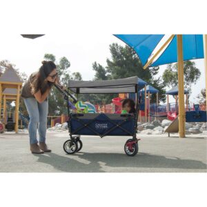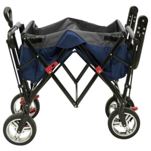 Folding Wagon for Kids, Foldable Canopy with Sun/Rain Shade (Navy Blue)