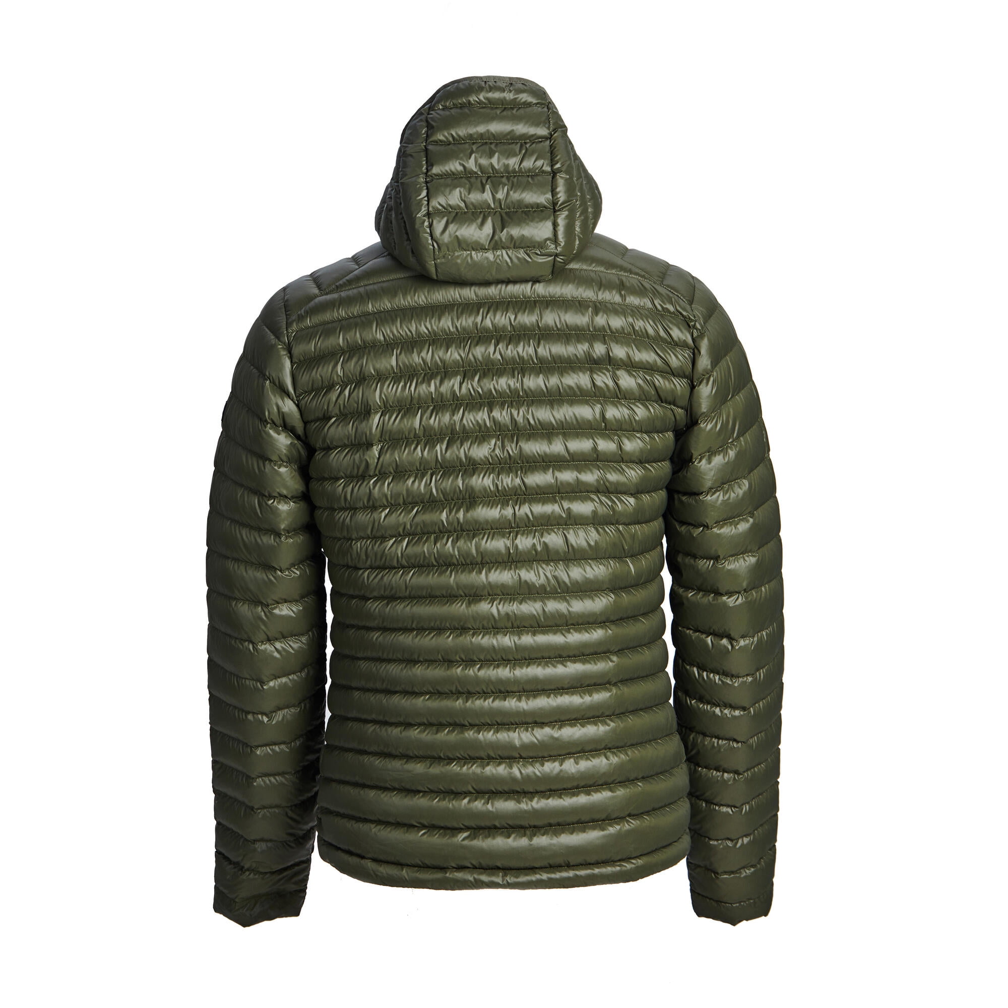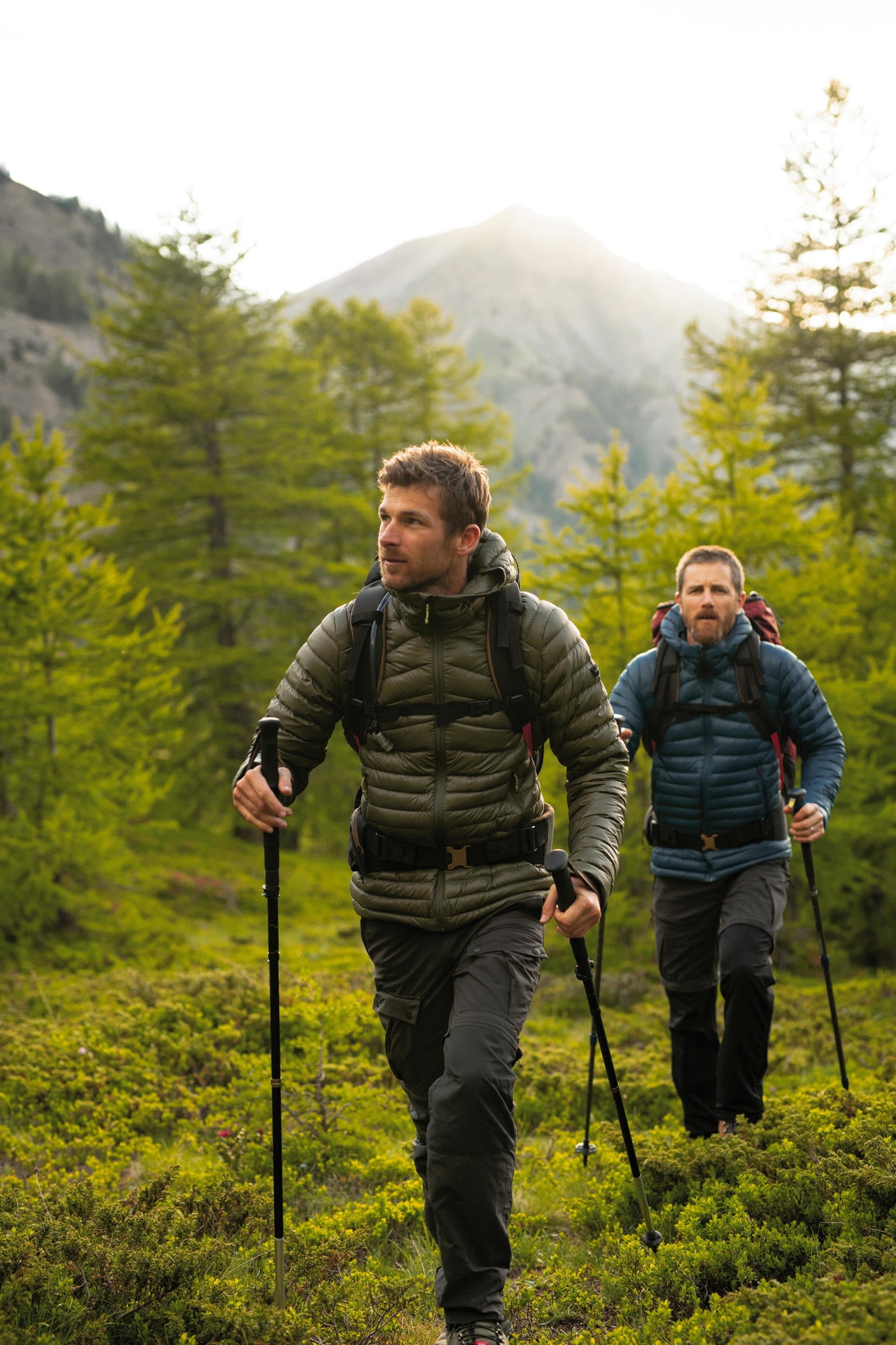 Decathlon Forclaz Trek 100, 23°F Real Down Packable Puffer Backpacking Jacket, Men’s, Green, Small Warmth Comfortable between 23°F and 41°F. RDS ethical down with a fill power of 800 CUIN. Worn as a 3rd layer, it has been certified for an active comfort temperature of 23°F during a standardized test in a thermal chamber. Compact design/Weight of the fill It easily folds away into its left-hand pocket using a zipper with a double pull. XS: 2.7 oz. S: 2.9 oz. M: 3.1 oz. L: 3.3 oz. XL: 3.5 oz. 2XL: 4 oz. Water repellent Surface-treated outer fabric to prevent water from getting in. The water-repellent property of a fabric is its ability to make water run off its surface without absorbing it. We recommend wearing a waterproof jacket if exposure to rain prolongs. We recommend that you restore it after each wash. Down benefits Thermal insulation is provided by the air trapped in the down and feathers. Ultra-low weight: Down is lighter than synthetic fill while offering the same degree of warmth. This saves even more weight in your backpack. Ultra-compressible. Caring for your jacket 1. Machine wash, 30°F, with 2 or 3 tennis balls. Gentle spin cycle. 2. Tumble dry with 2 or 3 tennis balls. Repeat 2 or 3 times until it is completely dry.