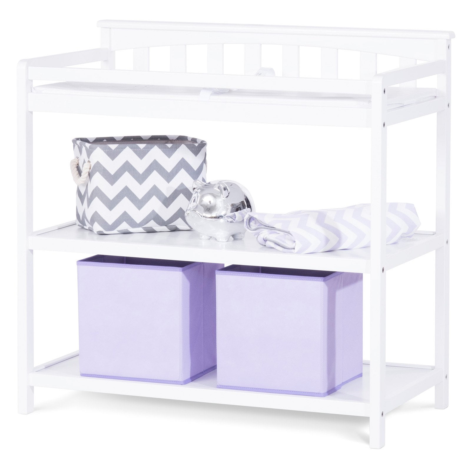 Bring timeless style and convenient storage to your little one’s nursery with the Flat Top changing table. The changing table features a flat top that provides a touch of sophistication and coordinates perfectly with many design styles.