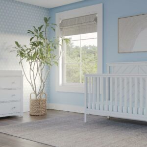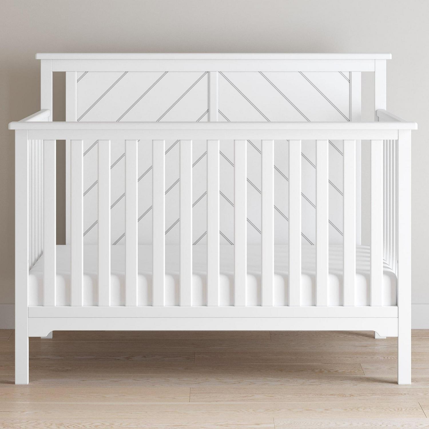 Forever Eclectic Hampton 4-in-1 Convertible Crib, Flat Top Headboard, Matte White