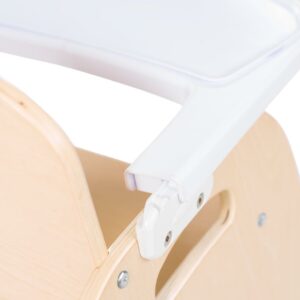 The Easy Serve Feeding Chair is available in five popular seat heights to allow children’s feet to rest on the ground for maximum comfort. The Easy Clean Tray adjusts to 3 locations for a perfect fit and is removable for convenient meal prep and cleaning in a dishwasher. The chair has a wide no-tip base that keeps it stable and securely to the floor with an adjustable harness that keeps the child safely in place. This chair enables the child to self-load with minimal assistance from the caregiver and has a food service grad finish that is easy to clean and sanitize. The Easy Serve is made from Baltic Birch plywood and is built to last with a lifetime warranty. Features: Available in 5 , 7 , 9 , 11 and 13 seat heights Stacks 4 high for space saving storage Removable EasyClean tray for convenient meal-prep and cleaning Easy to clean and sanitize with dishwasher-safe tray EasyClean Tray adjusts to 3 locations Adjustable harness for child Made with durable Baltic Birch plywood and food-service-grade finish Lifetime warranty