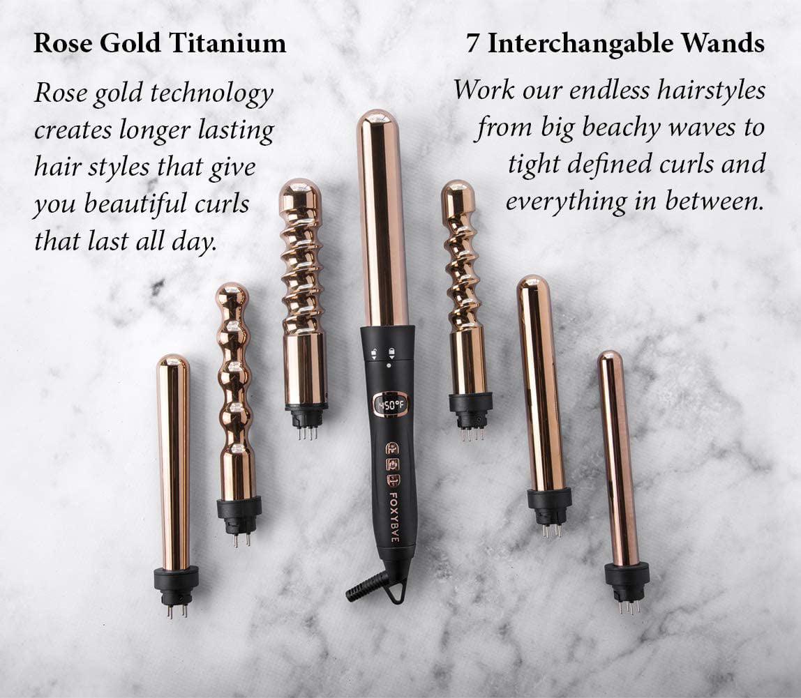 Foxybae Lea SE7EN Travel Size 7 In 1 Titanium Hair Curling Wand, Rose Gold