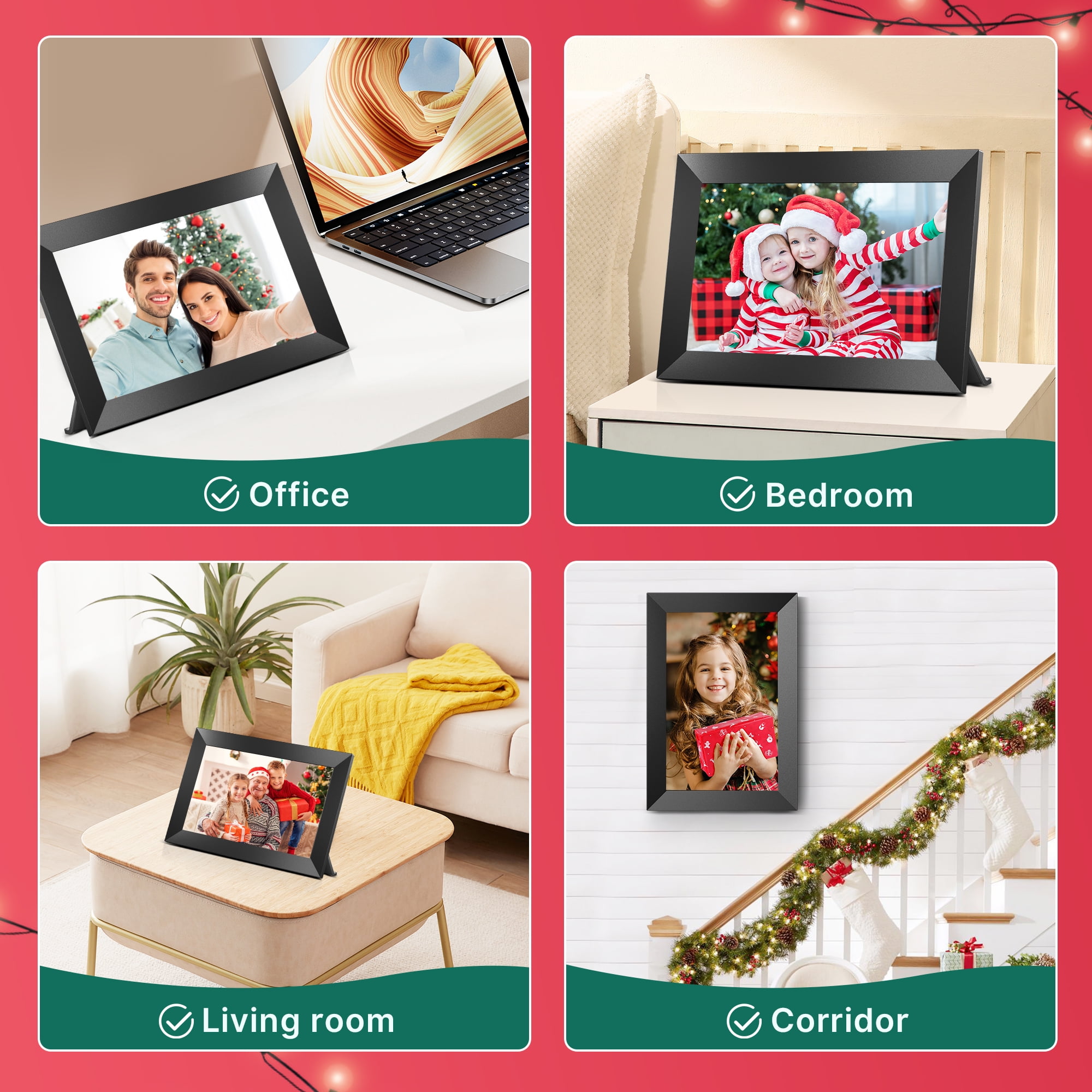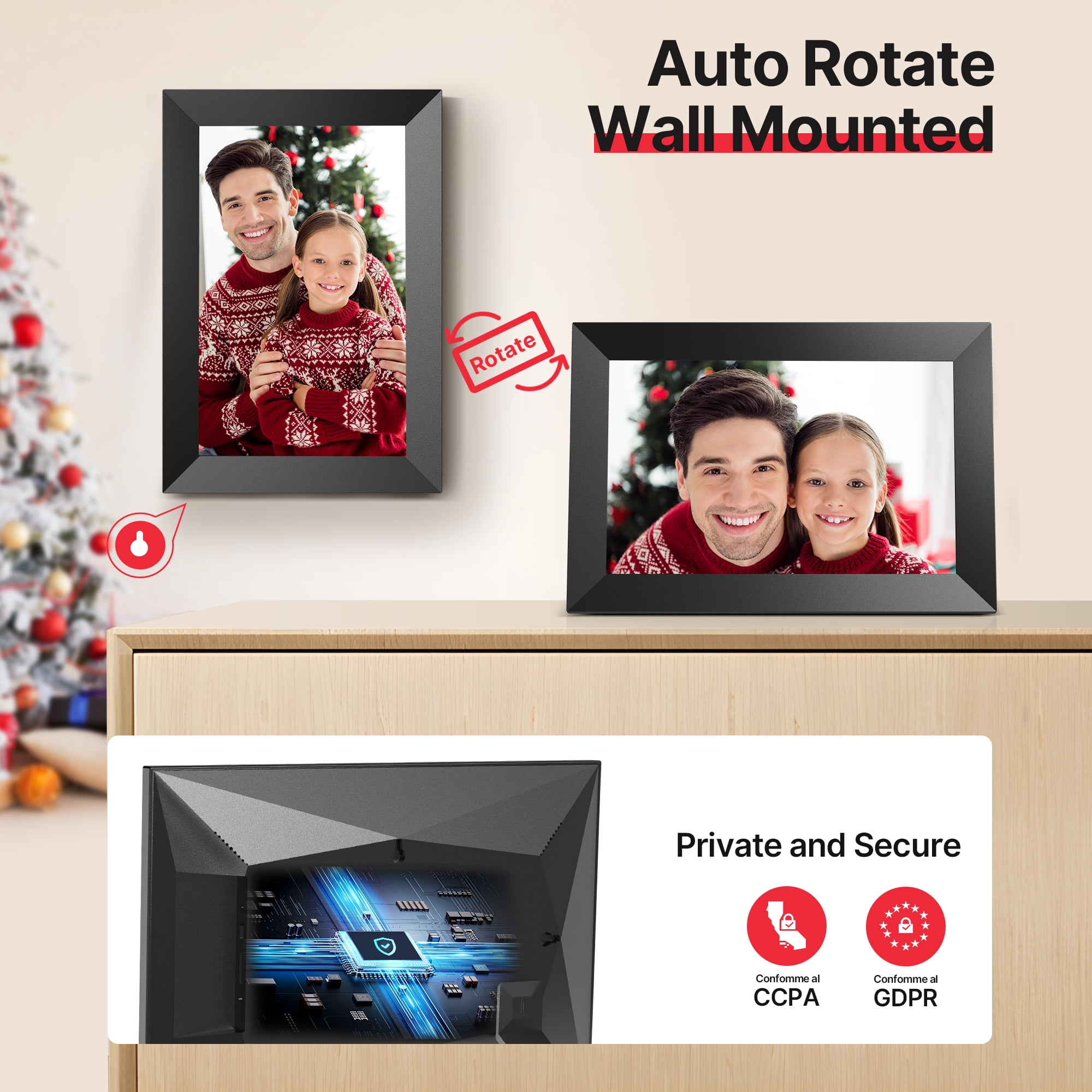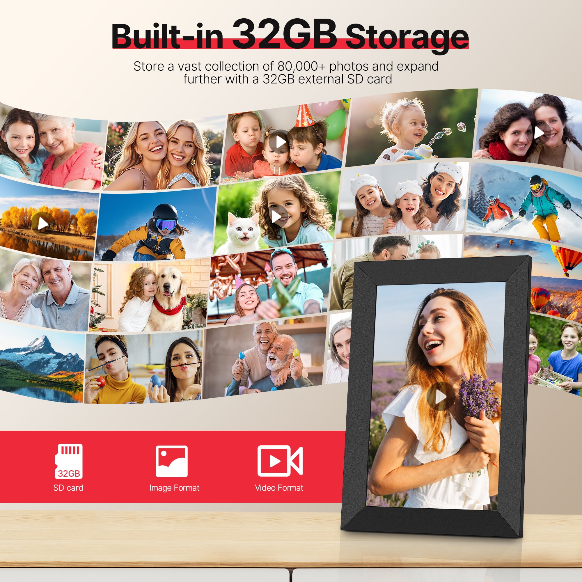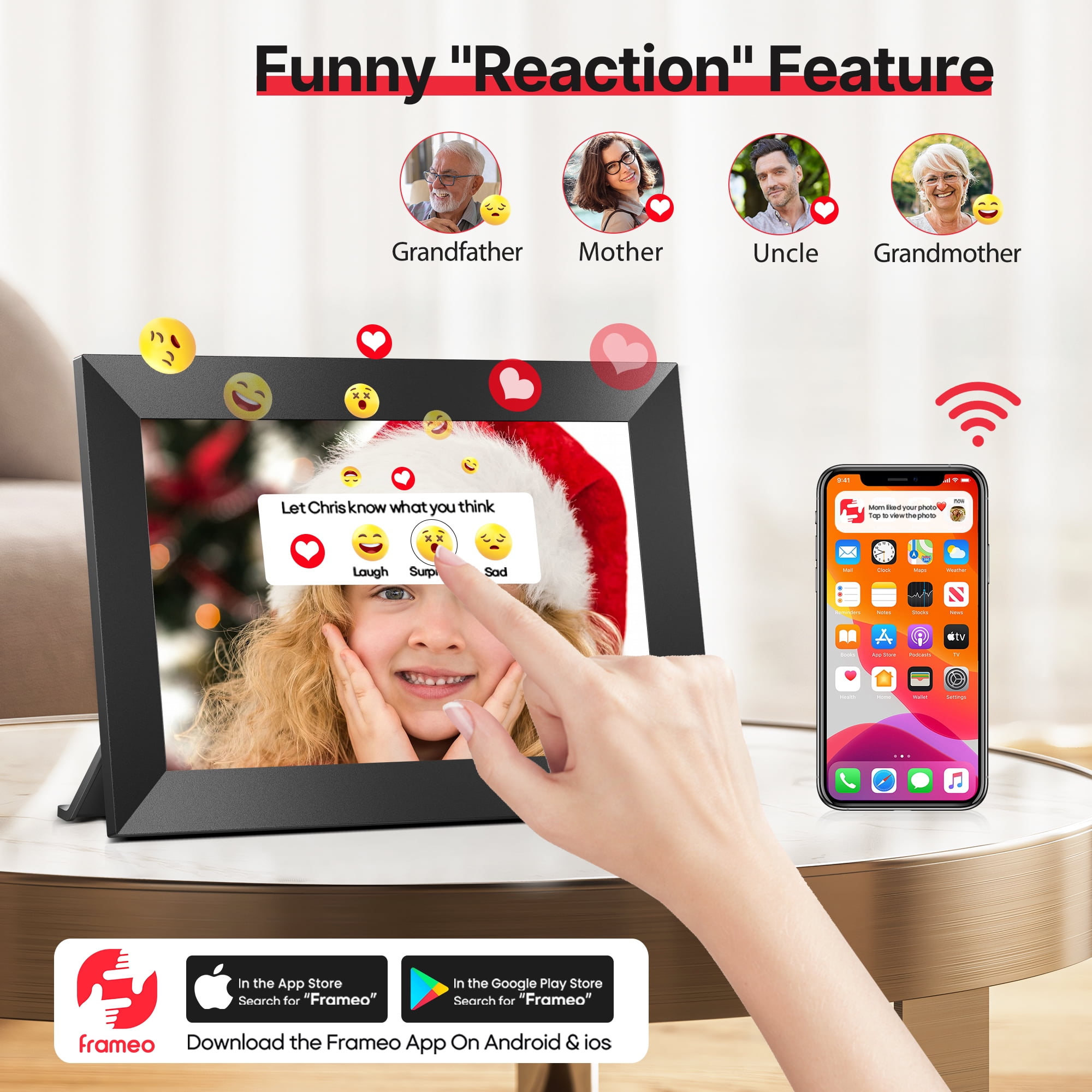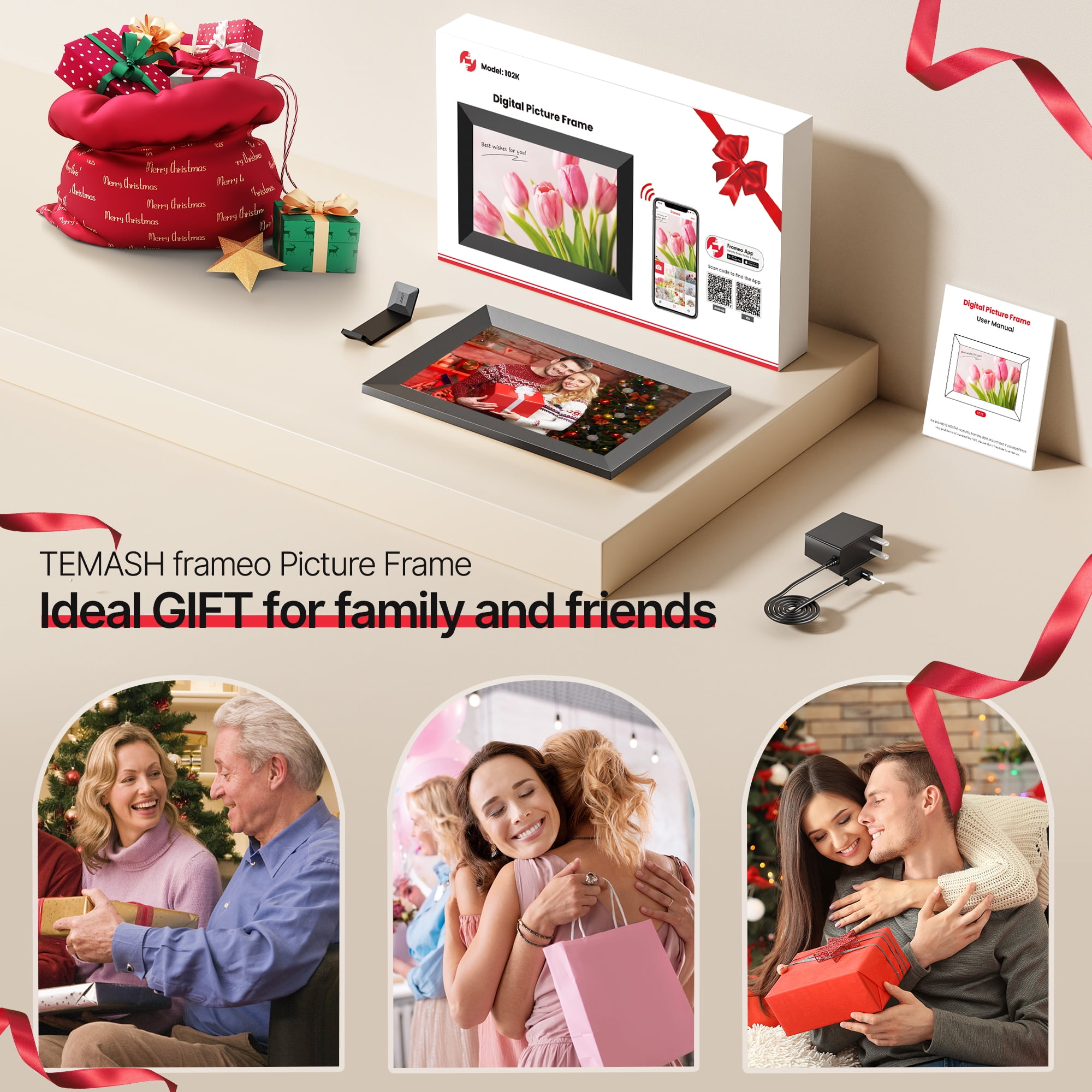 💻Effortless Wireless Sharing The Temash digital picture frame connects effortlessly to WiFi, allowing you to easily share photos and short videos (up to 15 seconds) anytime, anywhere using the frameo app on iOS or Android. With just a few simple steps, the treasured moments can be displayed on the Frameo WIFI digital photo frame. 🌿Simplified Setup Set up your electronic photo frame effortlessly using the frameo app, suitable for users of all ages, including those unfamiliar with smart devices. Download the app, invite friends and family, and together capture and cherish beautiful moments on the digital picture frame. 🌈Vivid Viewing Experience The Temash digital picture frame features a 10.1-inch IPS HD touchscreen with a high resolution of 1280*800, providing a clear and vivid viewing experience in any lighting conditions. 🖼️Plenty of Space for Memories Our electronic photo frame comes with a built-in 32GB internal memory, easily accommodating over 80,000 high-resolution photos. Expand your storage with an SD card (up to 32GB), supporting various image and video formats for a personalized experience. Note: Additional SD cards need to be purchased separately. 🐟Personalized Operation The WiFi digital picture frame is not only stylish but also loaded with practical features. It includes functions like photo, video, clock, calendar, auto-rotation, weather, image zooming, adjustable brightness, slideshow effects, and more. With this digital frame, you can easily share your favorite photos without the need for printing or buying multiple frames. It’s a simple and cost-effective solution for displaying your wonderful memories. 🌍Exceptional & Thoughtful Gift The Temash digital photo frame is perfect for birthdays, weddings, Mother’s Day, Christmas, and family gatherings. Showcase your precious memories on the digital frame, providing a warm avenue to stay connected with distant loved ones who may not use social media. 🍀Unconditional refund within 30 days At TEMASH, your satisfaction is our priority. If the electronic picture frame doesn’t meet your expectations within 30 days of purchase, we offer an unconditional refund. We are committed to ensuring the quality and functionality of our product and look forward to earning your trust.