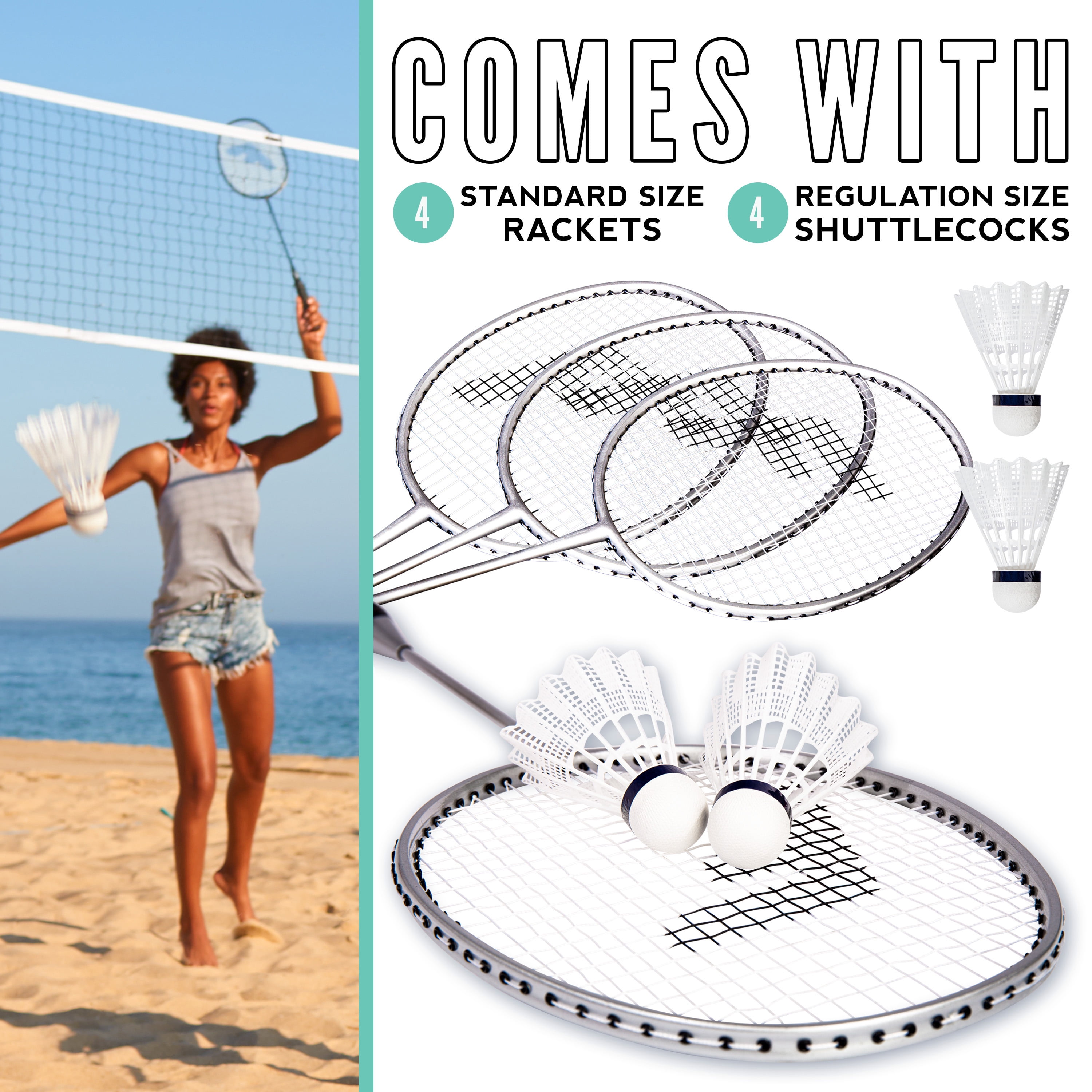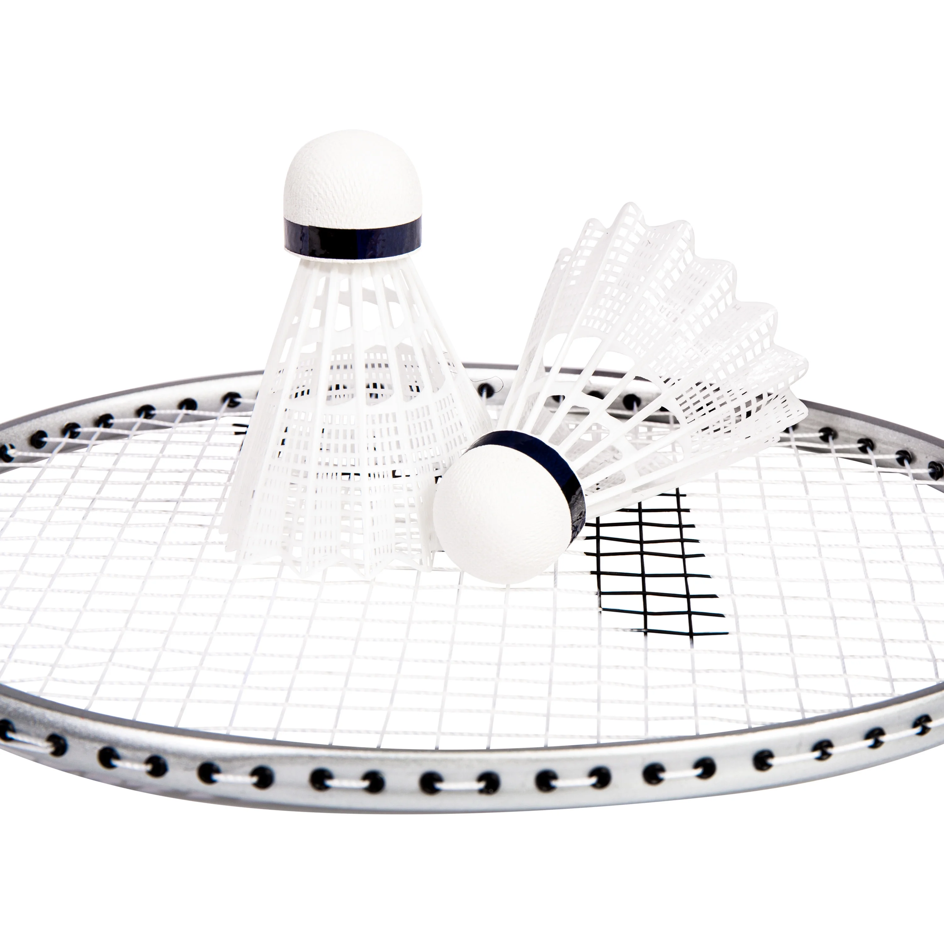Durable construction ensures long-lasting play. The rackets are made from lightweight yet strong aluminum and feature a one-piece design. The shuttlecocks are nylon/EVA to ensure a balanced flight pattern. Deluxe carry bag allows for easy transport and storage of the entire set Features smooth wrapped handles and a durable racket string pattern Perfect for a day out on the beach or backyard
