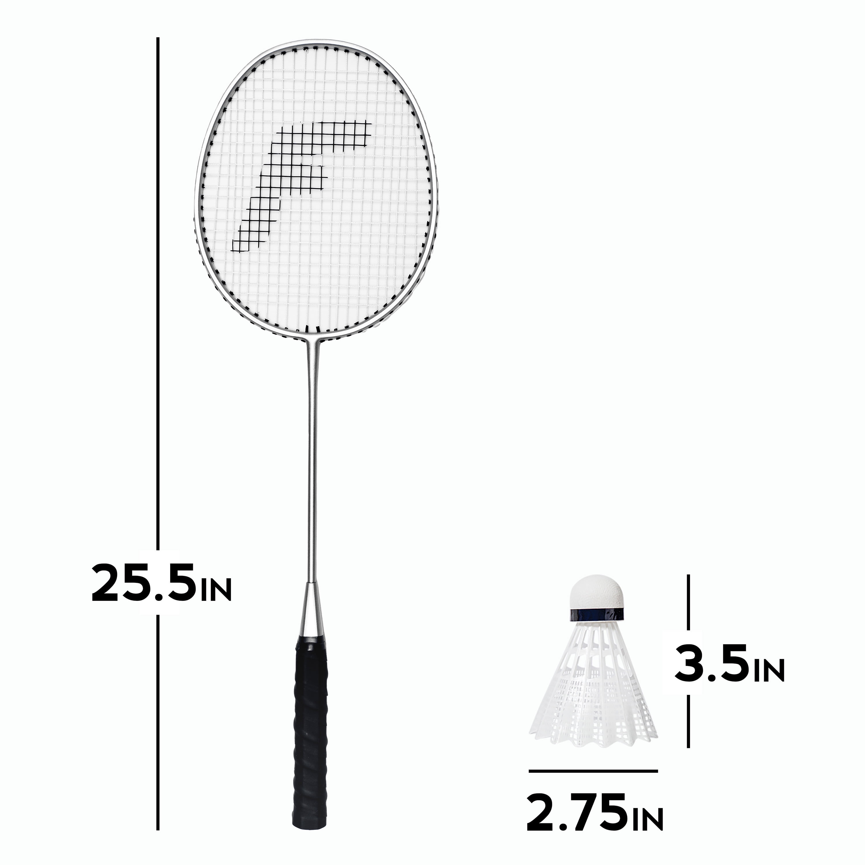 The Franklin Sports badminton and shuttlecock set is all you need for a day on the badminton court. This set includes (4) aluminum rackets and (4) nylon birdies. The entire set is easily transported with the handy carry bag which is perfect for storage and transport. Our 25.5″ standard sized badminton rackets are a durable one-piece design built to withstand hours on the court. With (4) rackets and (4) birdies, get your friends and family together for a perfect afternoon game.