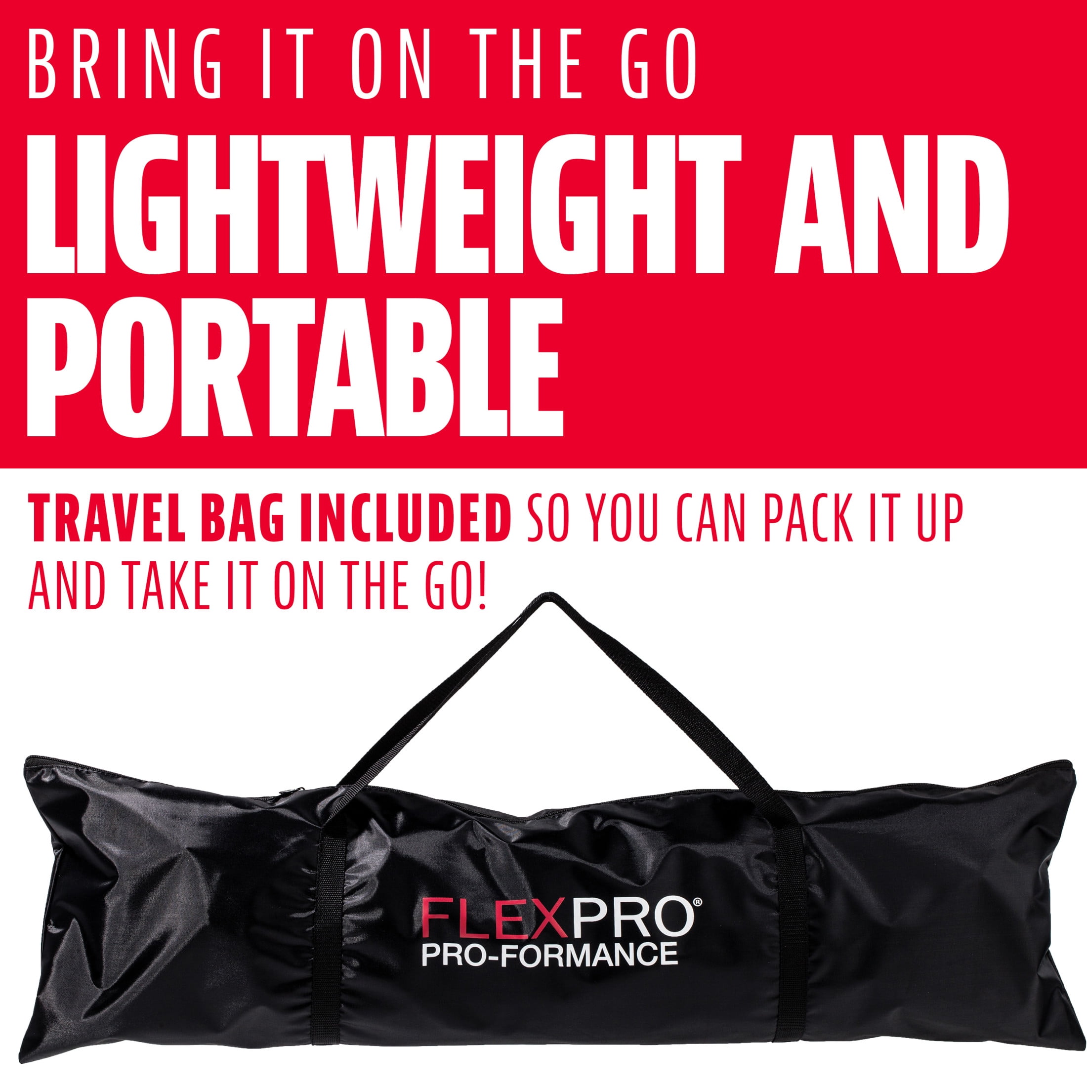 PERFECT TRAINING EQUIPMENT: The Flexpro backstop net is the perfect piece of training equipment for young players to work on their hitting, throwing, and pitching skills HIGH PERFORMANCE: This net is constructed with all-weather heavy duty netting, flexible fiberglass poles, and a sturdy base to ensure premium performance that will stand up season after season EXTRA LARGE TARGET AREA: The assembled 7′ x 7′ dimensions ensure that players have a large target area that can snag errant hits and throws with ease QUICK AND EASY ASSEMBLY: This net is designed with flexible fiberglass rods that attach easily for fast, easy setups and breakdowns with no tools required LIGHTWEIGHT AND PORTABLE: This backstop comes with a travel bag included so you can pack it up and take it on the go to the backyard, the beach, or the ballpark with ease!