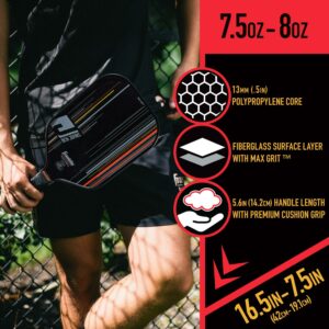 – STRONG, DURABLE CORE: The 13mm polypropylene paddle core is built for durability and effortless shot making while the fiberglass surface layer ensures a larger sweet spot in the center of the paddle for flawless contact and increased control