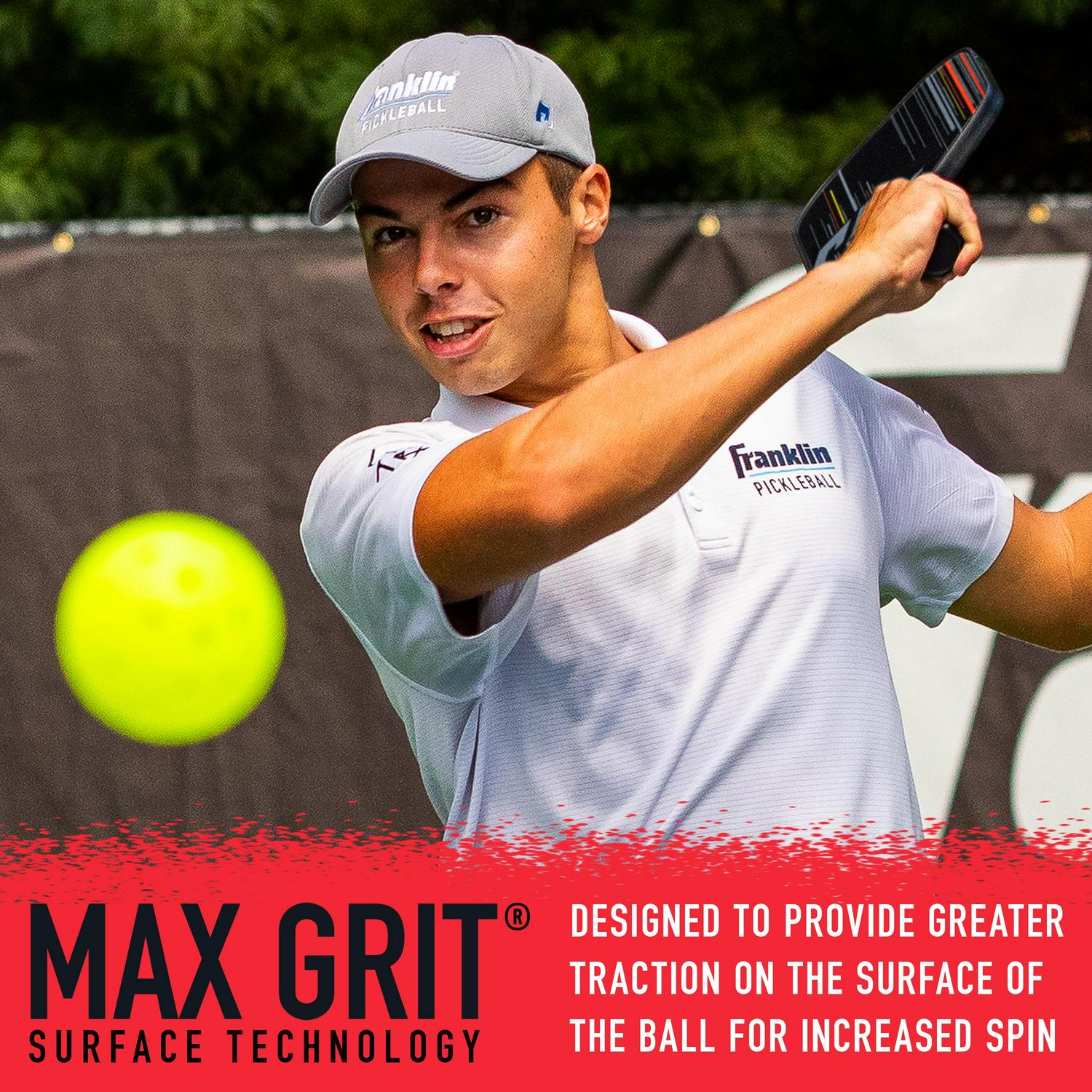 This Franklin Sports paddle is constructed with max grit technology designed to dampen vibration for optimal control and precision play. The 13mm polypropylene paddle core is built for durability and effortless shot-making while the fiberglass surface layer ensures a larger sweet spot in the center of the paddle for flawless contact and increased control. This premium quality paddle has been constructed to compete, and win, at the highest level. The premium quality paddle features our max grit textured surface technology designed for maximum spin and reduced vibration. The max grit surface material is USAPA approved and is designed to provide greater traction on the surface of the ball to increase the spin rate for optimal control..