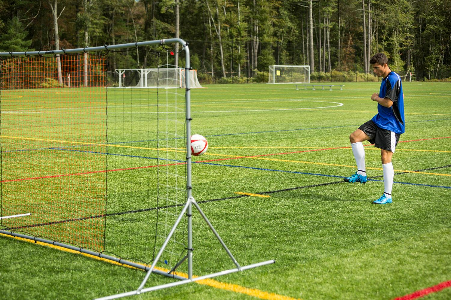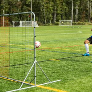 Whether for leisure or practice sessions, you can count on this Franklin Sports rebounder to deliver the performance you need, rain or shine. This product is suited for skill-building or friendly matches in many settings, such as schools, clubs, casual sporting events, and more. The Franklin Sports soccer rebounder features heavy-duty galvanized steel tubing for durability. It’s equipped with precision-fit locking pins and six galvanized ground stakes to hold the frame securely in place. The all-weather target net with bungee cord attachments has a double-sided design, allowing multiple players to train at the same time. This soccer training rebounder is 12′ wide and 6′ high. Franklin Sports rebounder, 6′ x 12′.