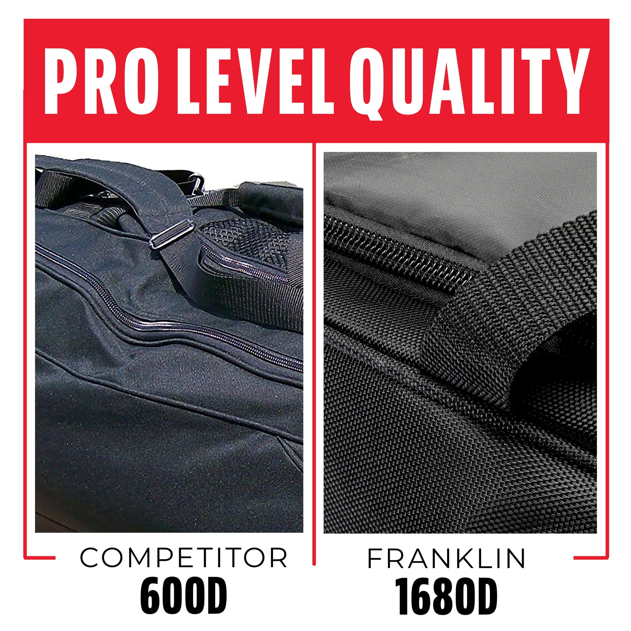 The Franklin Sports Traveler Roller is engineered to become every player’s favorite equipment bag! The pro-quality 1680D water-resistant polyester makes this the most durable equipment bag on the market and is guaranteed to last you multiple seasons. When it is time for practice, game day, or that away tournament, easily organize all the equipment you need. With its huge 36” x 12.5”x 12” size it has compartments that easily fit accessories, cleats, bats, helmets, and fielding gloves. The Traveler Roller doesn’t just hold your equipment – it protects it, too. This equipment bag is water-resistant, so all your valuables stay dry if it suddenly rains while you’re at-bat. The pull handle and heavy duty easy-roll wheels get your bag over sidewalks, roads, dirt, grass, and even gravel without hassle and without tipping over, and the premium, reinforced bottom ensures the bag won’t tear even after heavy use. Stay game ready with the Franklin Sports Traveler Roller!