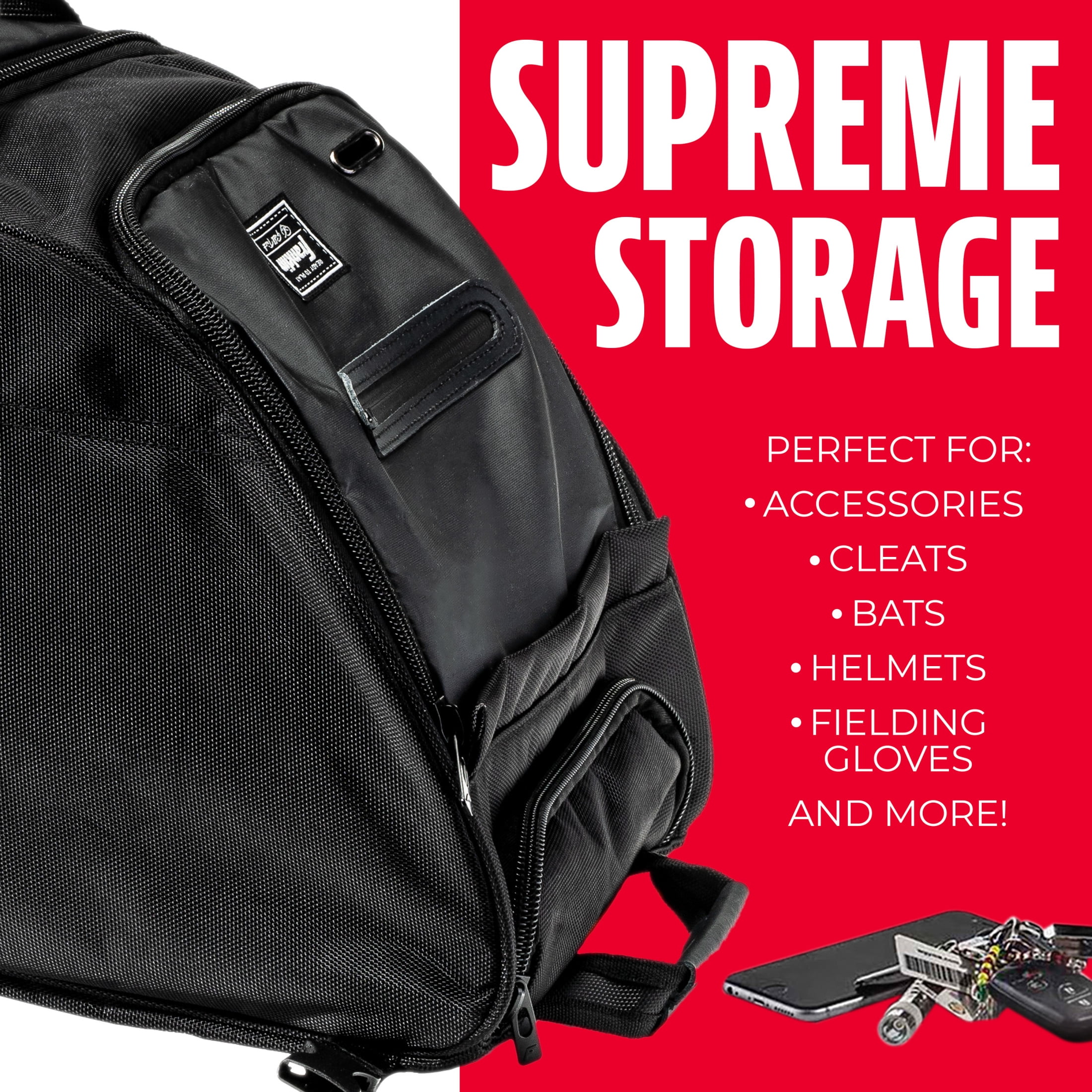 Multi season durability: 1680D water-resistant polyester guarantees season after season use. Pro level Quality: Engineered to fit every players needs from baseball to softball. This equipment bag provides comfort, durability, and premium quality so you can remain game ready. Supreme Compartmentalization and Storage: 36″ x 12.5″ x 12″ size ensures compartments that easily fit accessories, cleats, bats, helmets, and fielding gloves. Easy-Roll Wheels: Heavy duty wheels and reinforced padded carry straps to take you from game to game. Dual Fence-Hooks: Convenient easy-use fence hooks keep the bag out of the in the dugout.