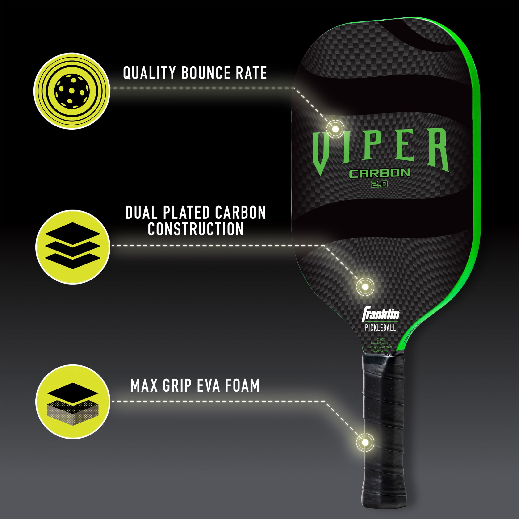 Franklin Sports Viper Pickleball Paddle – 13mm Poly Core Racket – Green