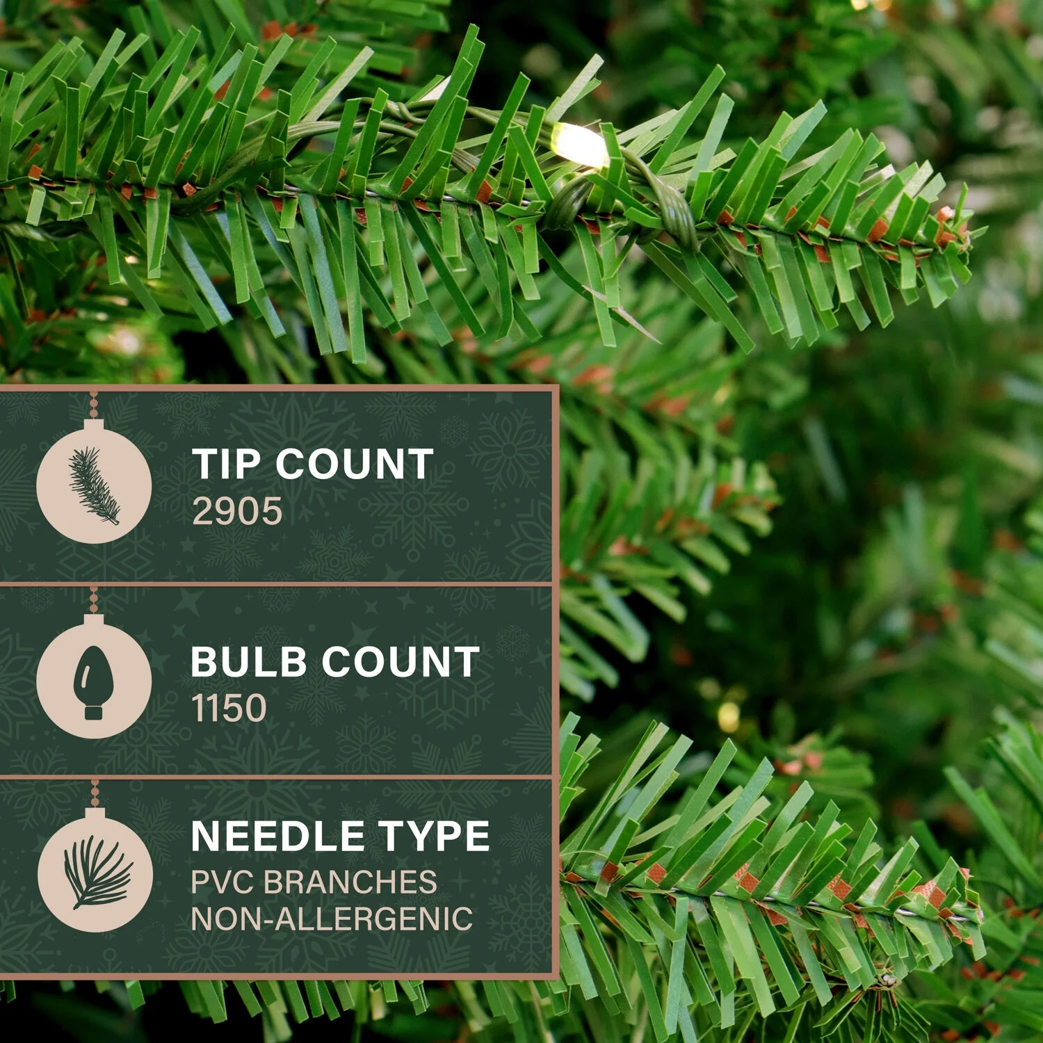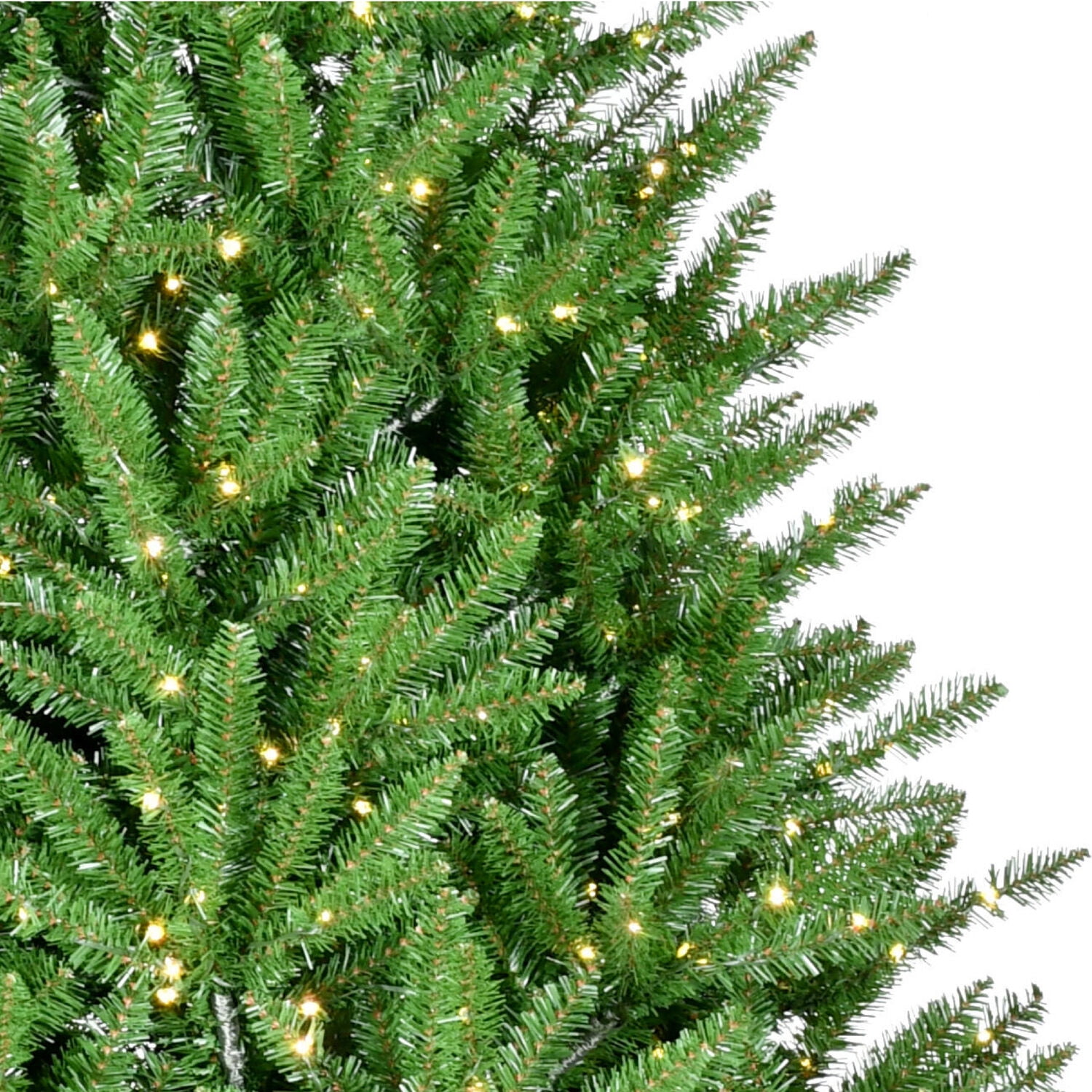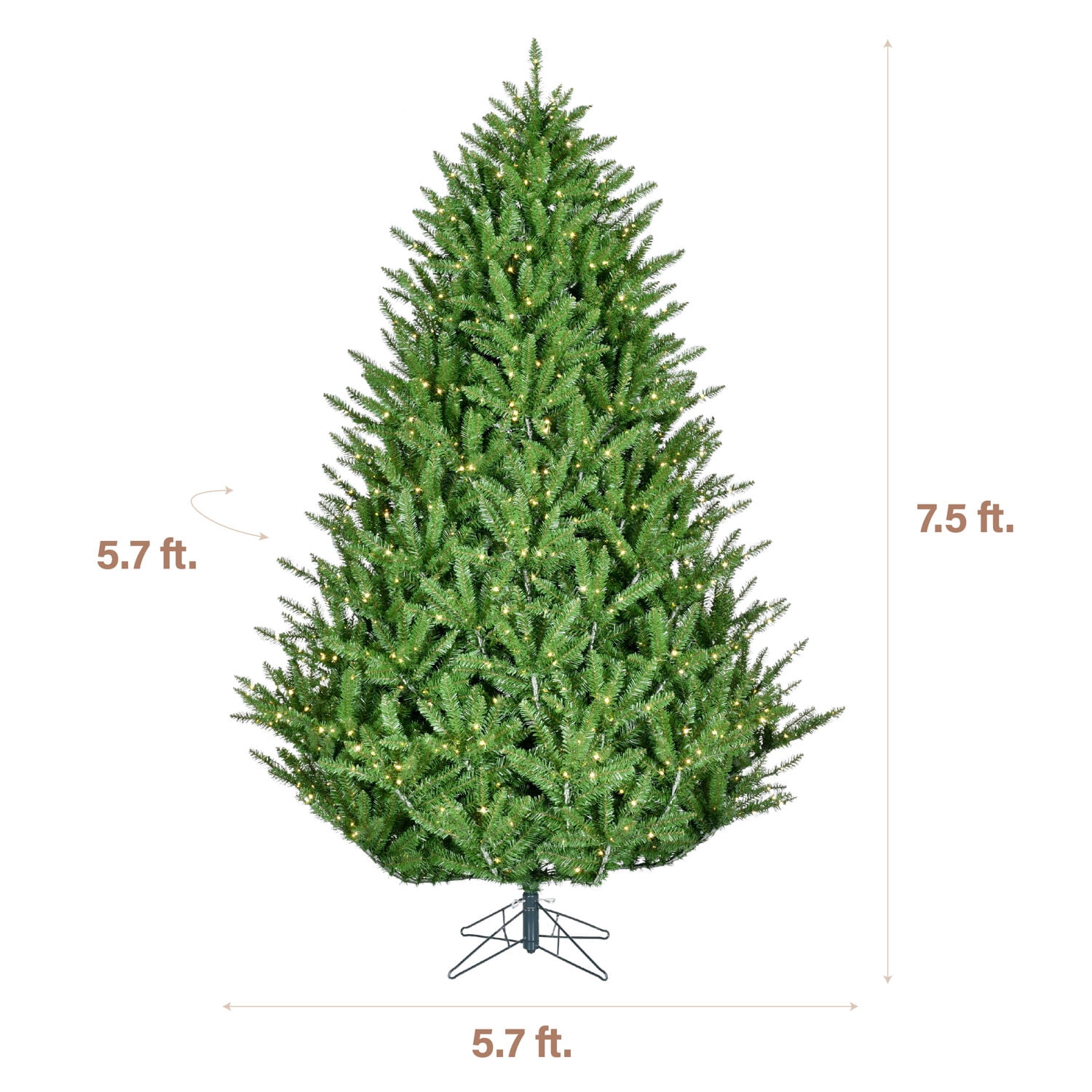 Fraser Hill Farm Artificial Tree with PVC Branches: This realistic 7.5-ft. tree features high quality PVC branches that are flame retardant and create the look of a natural tree with multiple shades of green Warm White Fairy LED Lights With 8 Functions: Tree is prestrung with 1150 warm white micro LED lights with 8 different functions to bring a festive glow to your home Lights up When Poles are Connected: EZ Connect technology makes assembly a breeze by auto-locking each tier securely into place and connects the light circuit for each section automatically Remote Control Included: Conveniently adjust the tree’s light settings to your liking from across the room with the included remote control Has Sturdy Metal Stand: Your tree will remain stable and safe for the whole season with the included metal stand Centerville Pine artificial Christmas tree Stands 7.5-ft. high with a 68-in. diameter Constructed with high quality PVC branches