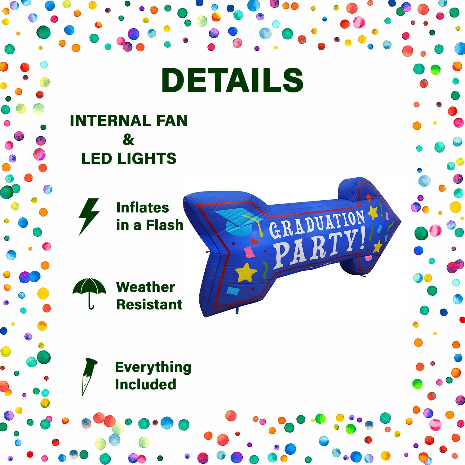 Fraser Hill Farm 8-Ft. Wide Graduation Party Arrow | Outdoor Blow-Up Inflatable with Lights | FHINGDPRTY081-L