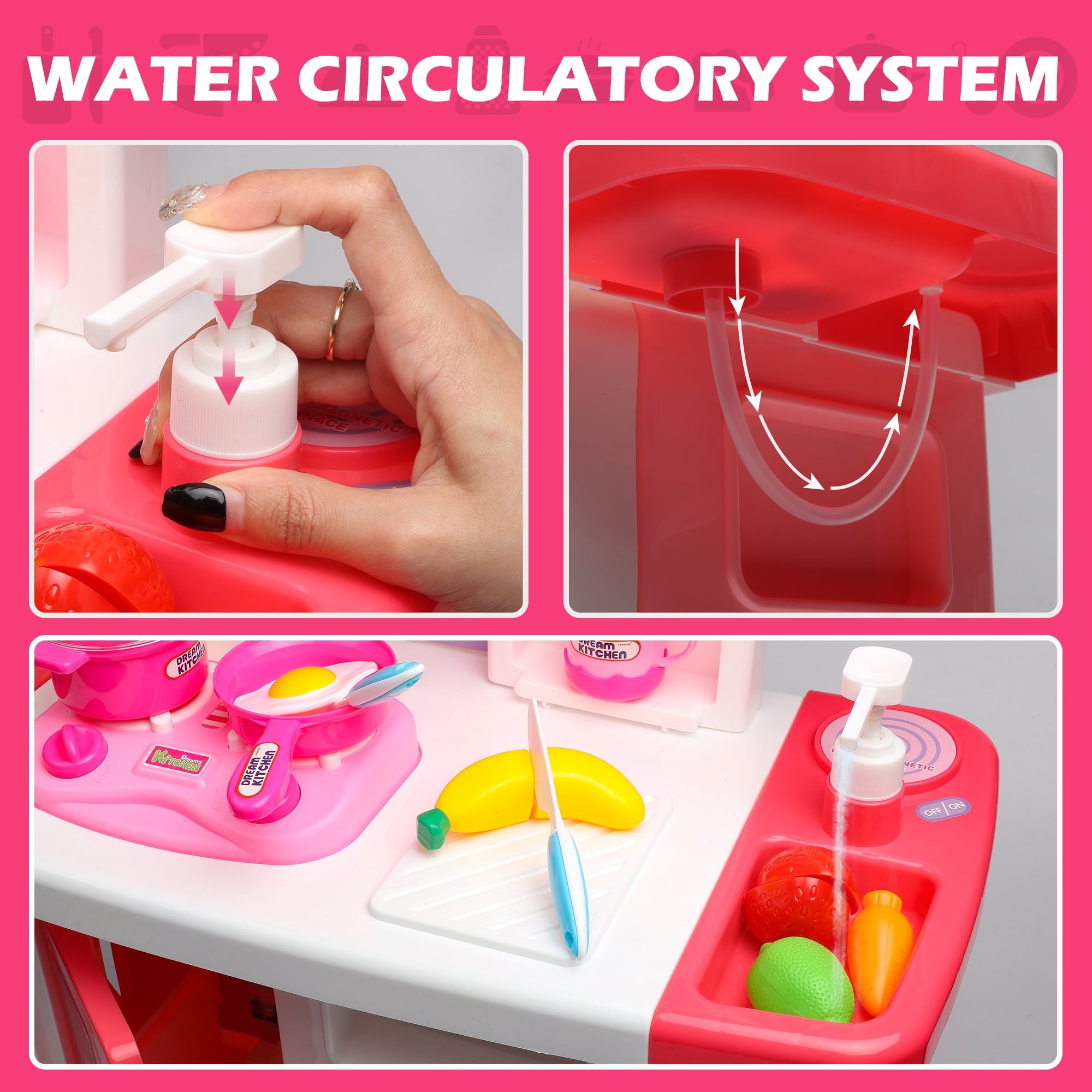 Freecat Play Kitchen Toy Set for Toddlers, Creativity and Learning Toys, Pretend Play Food Set Kitchen Accessories Christmas Birthday Gift Toys for Kids Boys Girls 3 4 5 6+(Pink Toys)