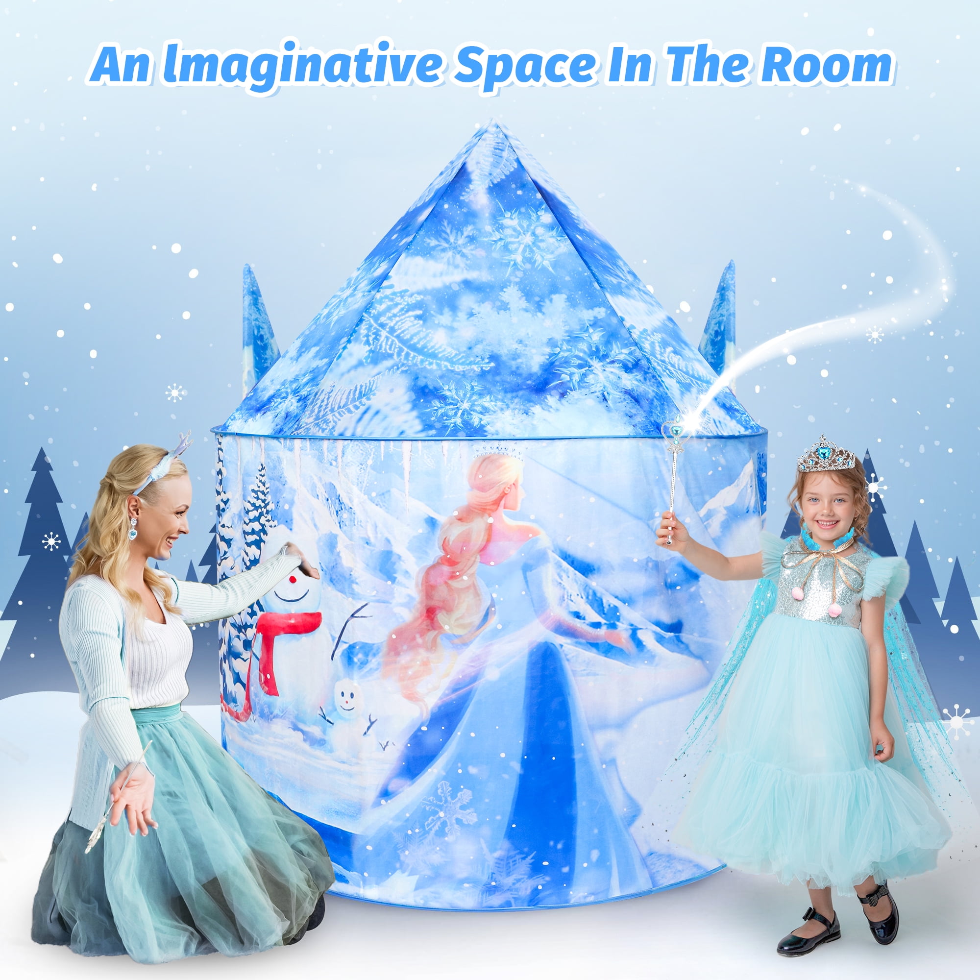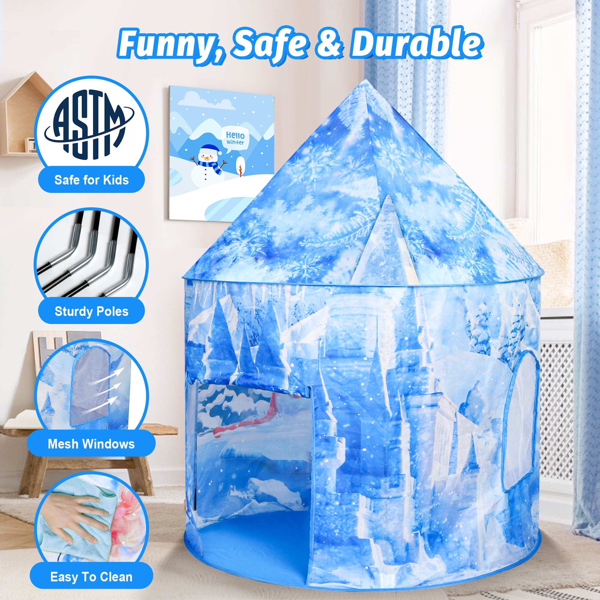 Freecat Play Tent for Girls, 53 inch Light up Ice Castle Playhouse w/ Windows &Doors, Girls Christmas Toy Gift for Indoor/Outdoor Use, Birthday Party Gift for Kids 3-6 5-7 Years.
