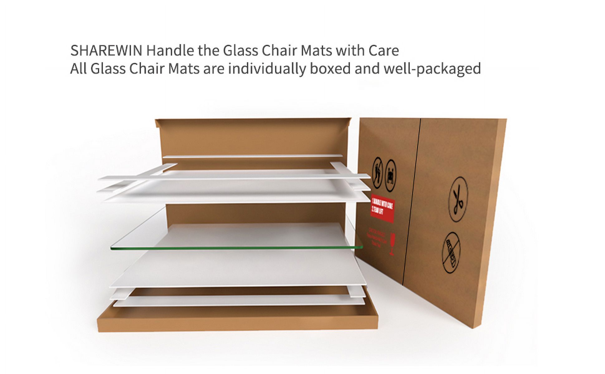 FreeLung Glass floor mat will surely be your smart investment you have made for your home office in years.Designed for most of floor types.Thick enough for regular household carpet.2 anti-slip liners are offered to help your chair mat in place.Use a damp cloth, spot wipe for an easy and quick cleanup.Each SHAREWIN Glass Chair Mat is individually boxed and shipped flat.