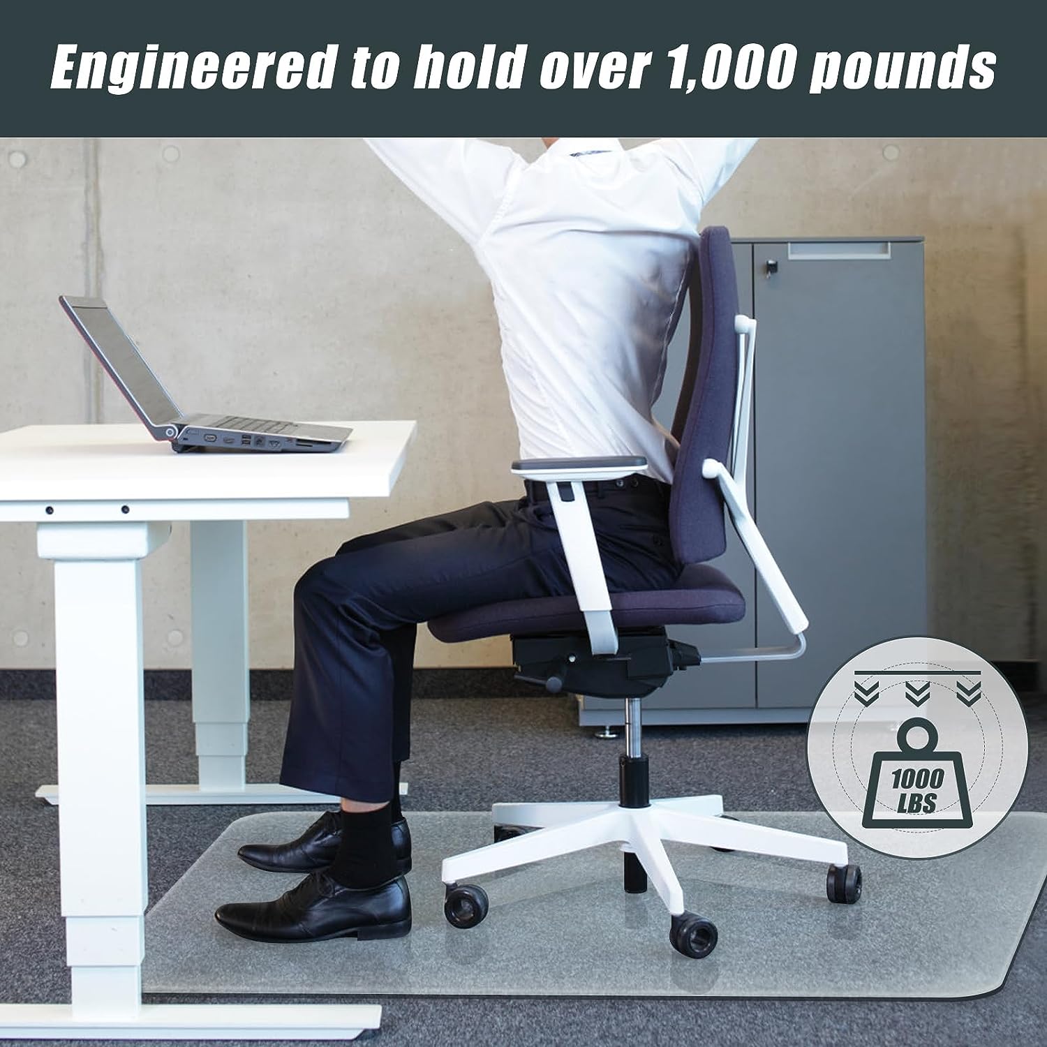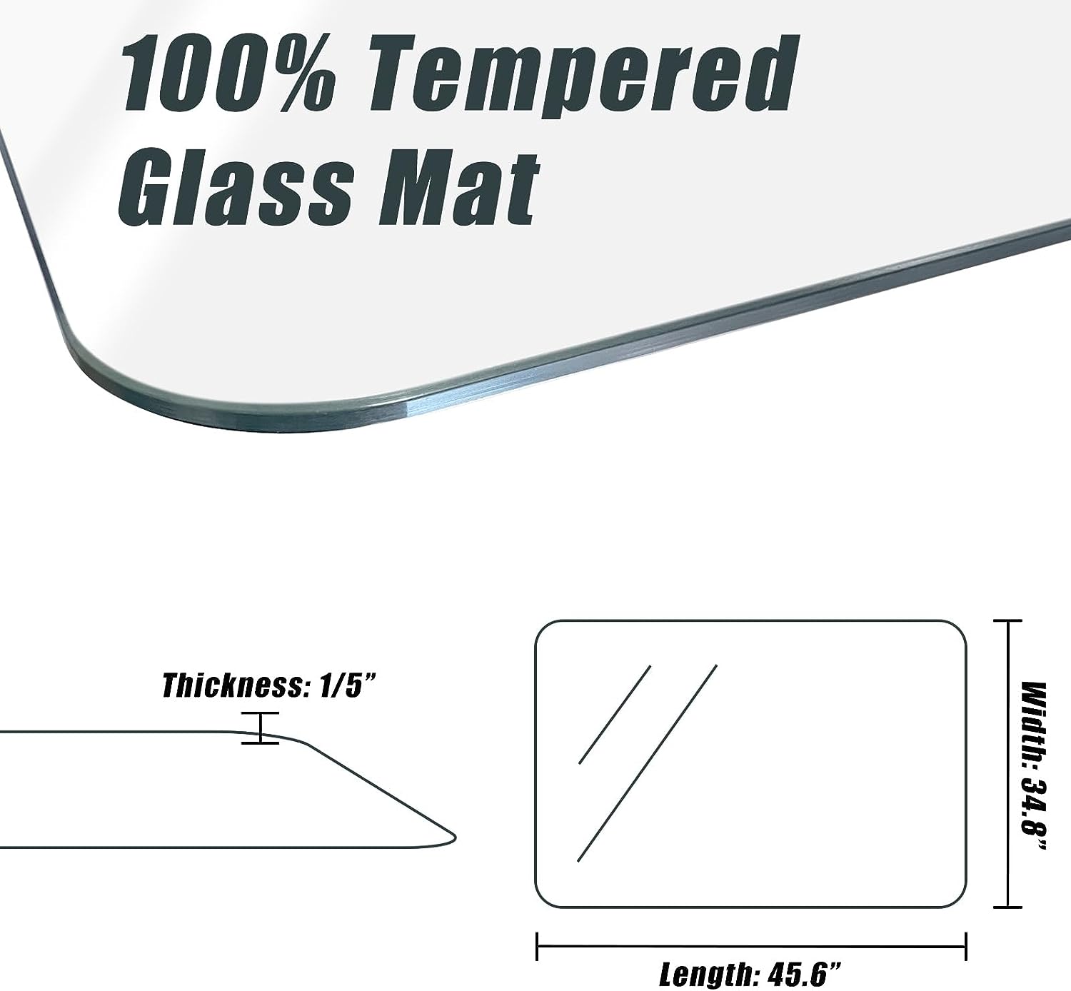 SCRATCH-RESISTANT & POLISHED EDGES: We are so confident that you’ll love the polished finish and scratch-resistant coating of our SHAREWIN glass floor mats for carpet to protect your floor from chair scratches and protect your carpet from wear and tear. EASY GLIDE ON MOST SURFACES: This glass chair mat is designed to use on multiple surfaces like carpet, hard floor, wood floor, marble, tile and more. Enjoy the free movement without worrying about rolling around issue. AESTHETIC & LONG-LASTING: SHAREWIN Glass floor mat offers a crystal clear and elegant look that will upgrade your home-office space. Using 1/5” Thick Safety Glass, SHAREWIN Tempered Glass mat lasts much longer than plastic chair mats. ECO-FRIENDLY CHAIR MATS: Fully recyclable, PVC free, no odor and non-toxic, glass chair mats are much safer compared with plastic chair mats. EASY TO CLEAN: To clean this glass chair mat, simply spot wipe using a damp cloth. Mat ships flat in individual box and setup will be relatively easy with two people. Anti-slip pads are offered to keep your chair mat securely in place.