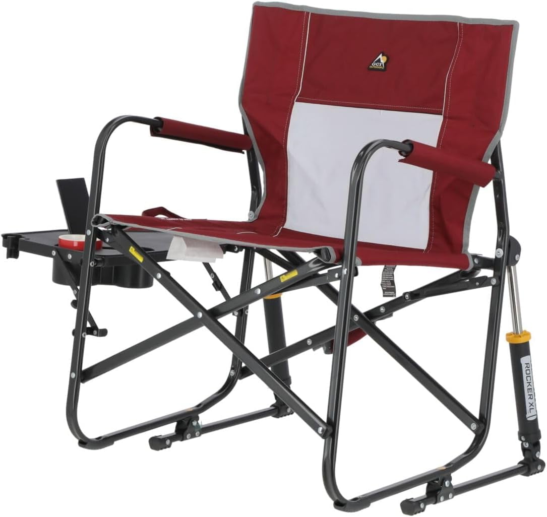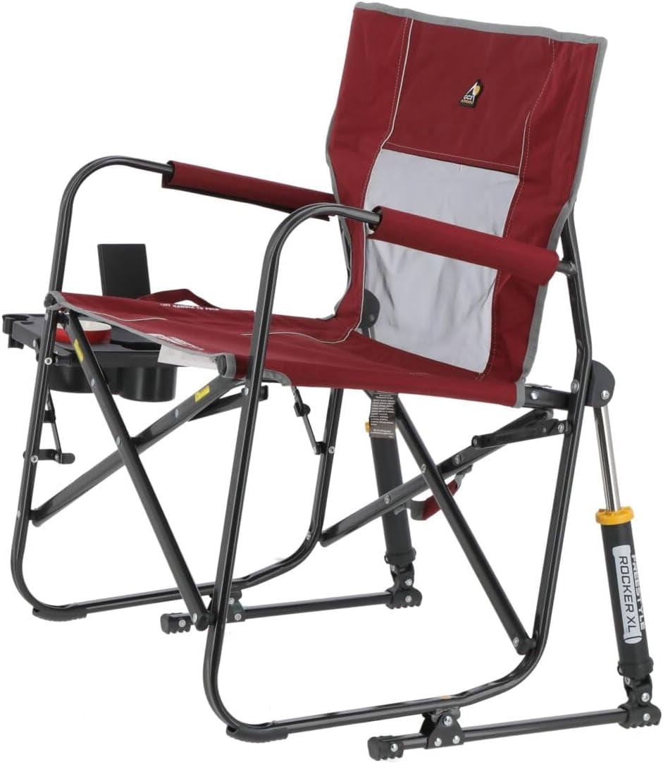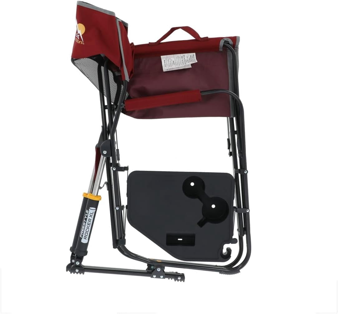 Freestyle Rocker XL with Side Table Camping Chair | Portable Folding Rocking Chair with Solid, Durable Armrests, Drink Holder & Comfortable Backrest — Red