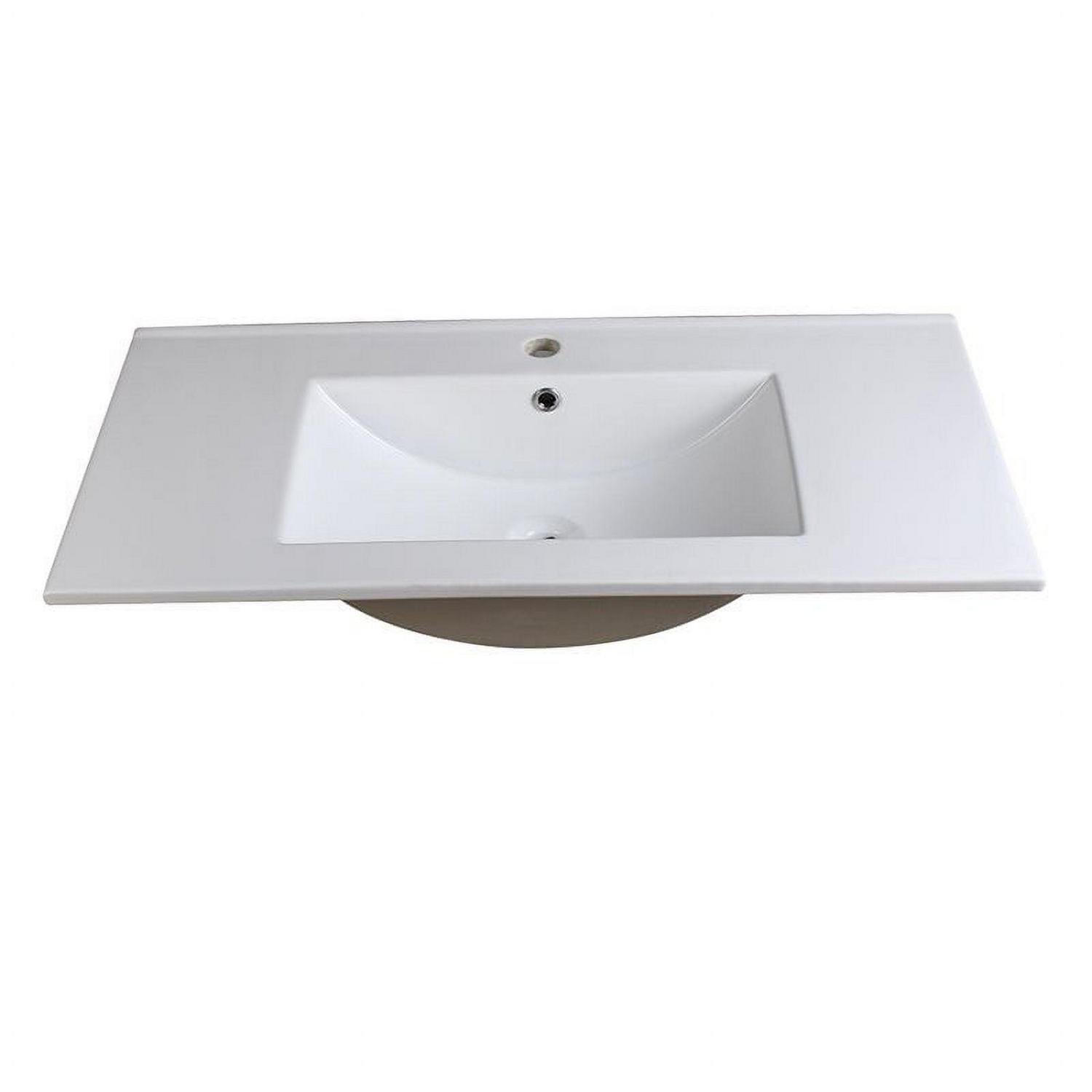 When it comes to sophisticated style, this modern white ceramic integrated sink and countertop is the complete package. Clean lines and a smooth profile make this the ideal sink and countertop combination for the classic, elegant bathroom. The Fresca Torino collection is available in a variety of sizes. This particular sink measures 36 in width.