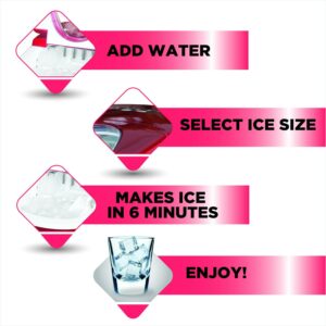 – Extremely quiet design runs at less than 38 decibels means your party music will never be over shadowed by your ice maker.