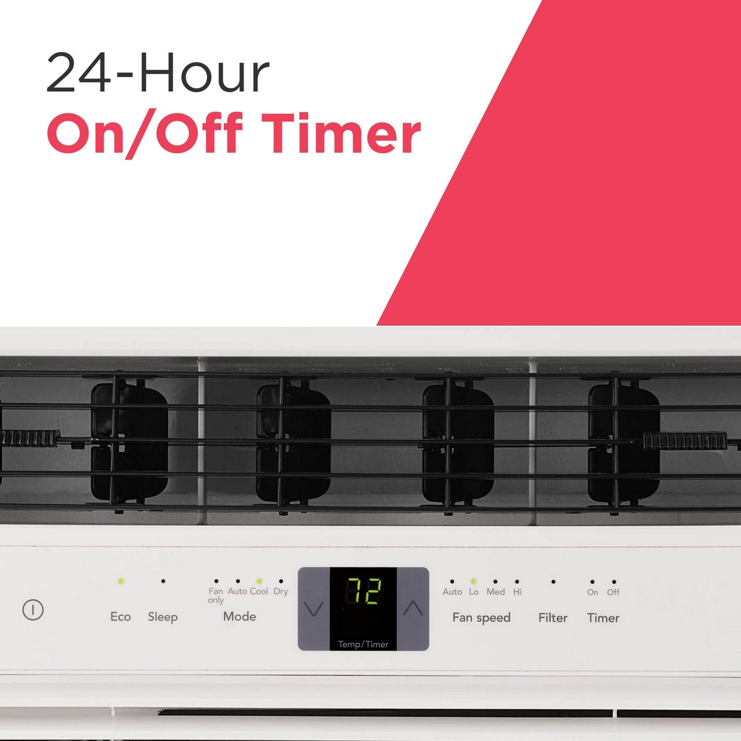 Keep your home cool and comfortable with the Frigidaire 6,000 BTU window-mounted room air conditioner. With easy installation and maintenance, this energy-efficient window air unit is great for hot nights and humid days and has a cooling area of up to 250 square feet. Turn on sleep mode, which allows gradual temperature increases over the evening to help with energy savings. The 24-hour programmable on/off timer provides added flexibility, allowing you to set a cooling schedule that works best for you. The easy-to-clean washable filter helps to capture dust from the air and keep your air conditioner working efficiently.
