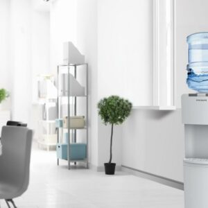 This Frigidaire Water Dispenser distributes both cold and hot water. The dispenser is powered by a robust compressor cooler, that makes sure your water is always cold. This water bottle dispenser features a removable drip tray for easy cleaning, and adjustable front leveling legs for adjusting your desired angle of inclination. There is a safety lock for the hot water button to protect it from careless use. With a clean, look this water cooler would fit in any kitchen, office or dorm. There’s an indicator displaying cooling and heating and power activity. This water bottle dispenser is an 100W cooling power and 420W heating power indicator that’s easy to operate, and it accommodates 3- or 5-gal bottles. This hot and cold water dispenser’s indicator lights let you check the unit’s settings with a glance.