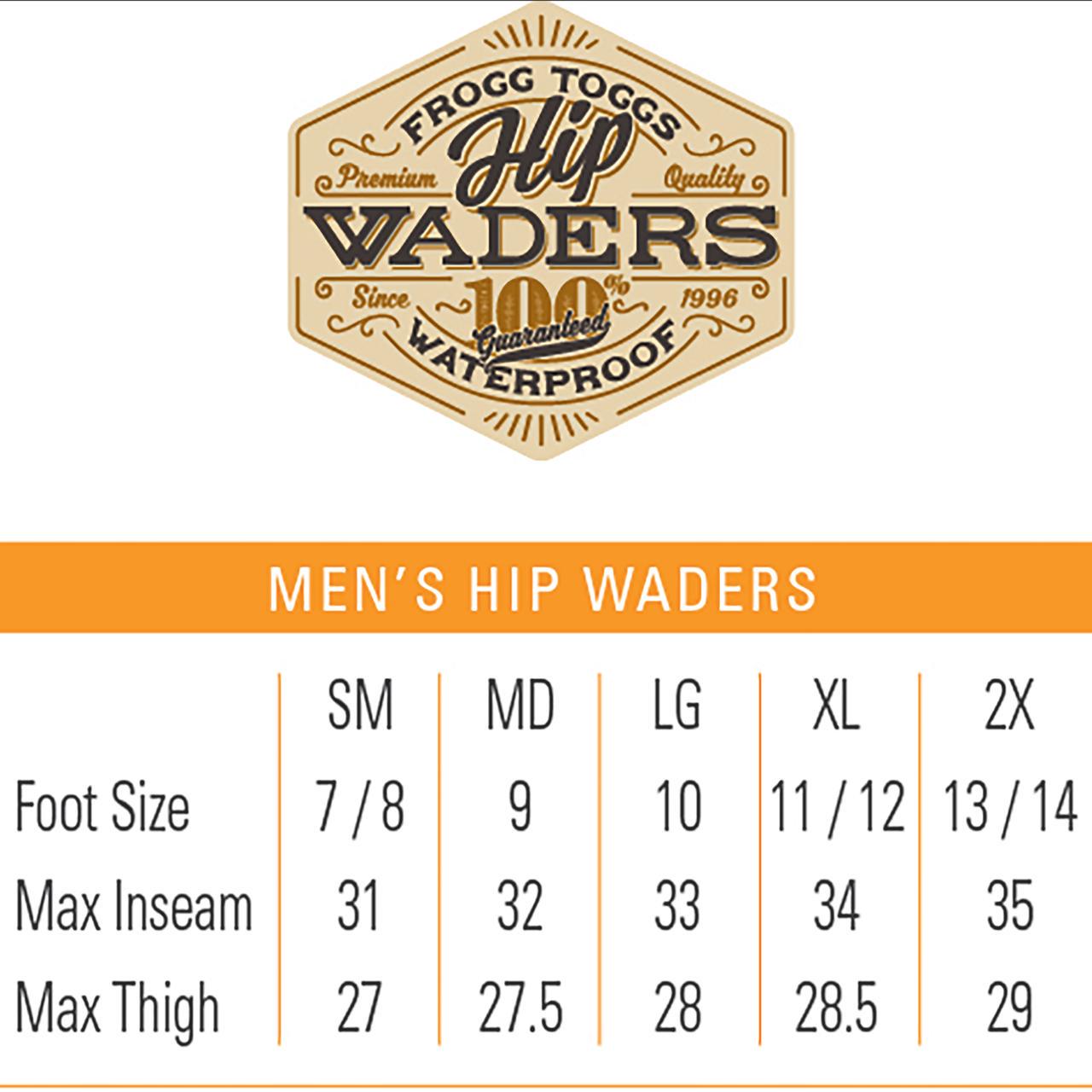 The frogg toggs Men s Cascades 2-Ply Bootfoot Poly/Rubber Cleated Hip Wader is 100% waterproof with fully taped and vulcanized seams and is ready to meet the need for the technical gear that is required. From professionals to newbies and everyone in between, there is more interest now than ever before in gearing up for soggy adventures. We ve become the world leader in breathable, affordable wade wear because we continually seek the features and functionality we know that our customers, including trophy-winning professionals, expect from their gear. Color: Forest Green; Size: 10