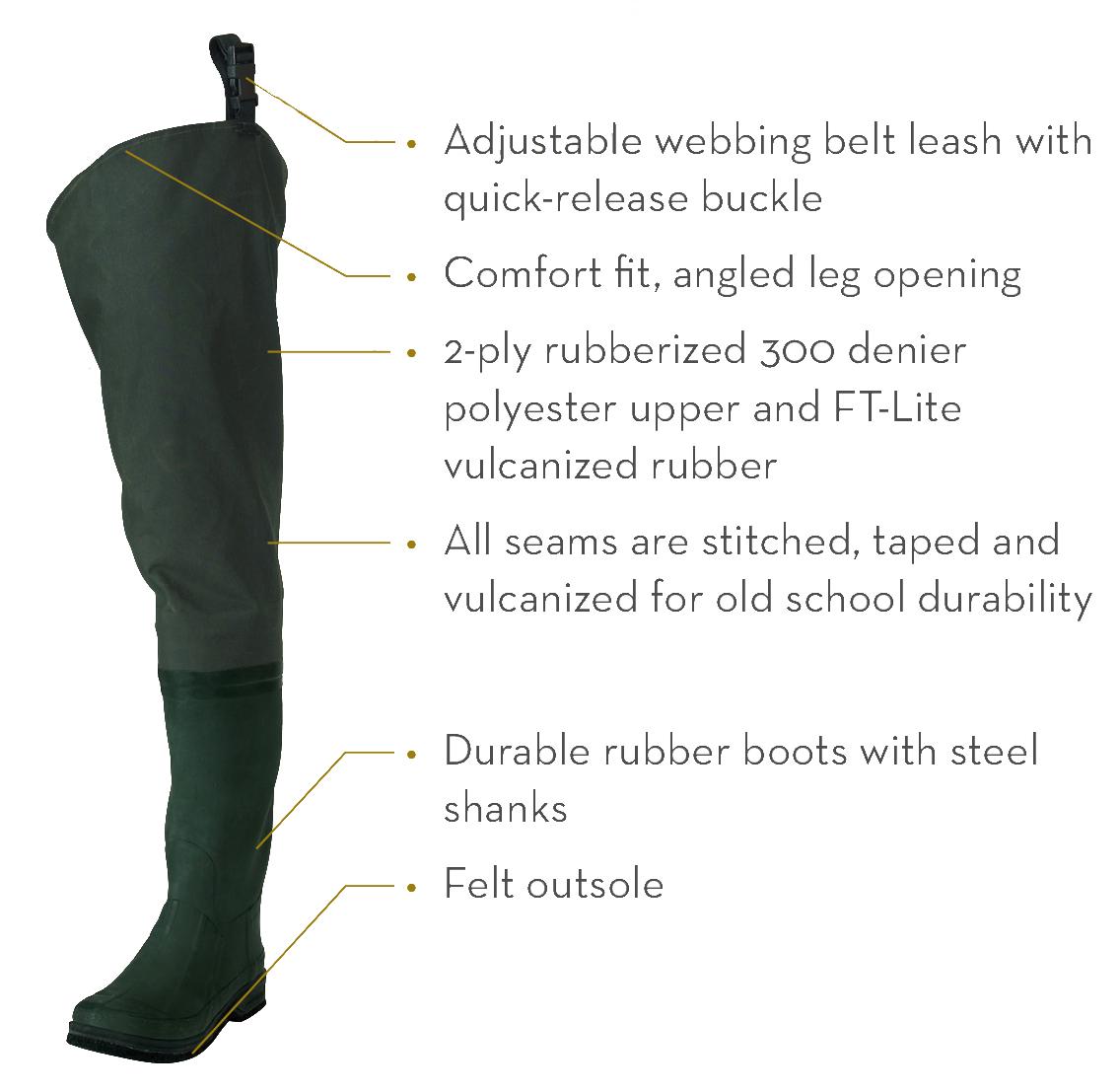 – Rubber boots feature a steel shank.