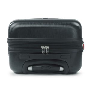 Join the dark side of the Force with this officially licensed Star Wars rolling suitcase. It boldly displays embossed Darth Vader artwork on the side with textured details. The luggage is made with molded ABS plastic that is durable and dent proof. It rolls on gentle, 360 degree spinner wheels with a dependable aluminum telescopic pull handle that tucks away when not in use. A sizeable polyester-lined main compartment is divided for easy organizing and includes a zip wet dry compartment for personal essentials. You can also store smaller items in two mesh zip pockets on the inside. The interior also includes clothing compression straps to help prevent spills and let you pack more. It is expandable for more space with a 2 inch zipper gusset. Finally, the retractable top and side carry handles help you load into trunks, cars, and overhead bins. It is easy to spot clean and is backed by a 5 year warranty.