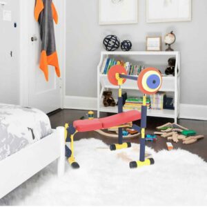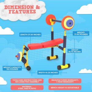 – Durable, sturdy, and colorful children’s exercise weight bench set promotes a healthy, activity-based lifestyle for kids from 3 to 6 years of age