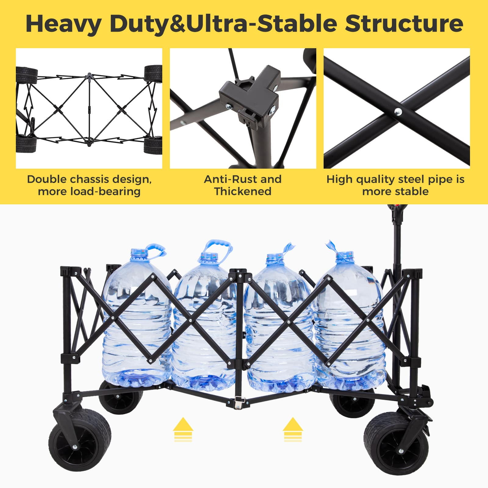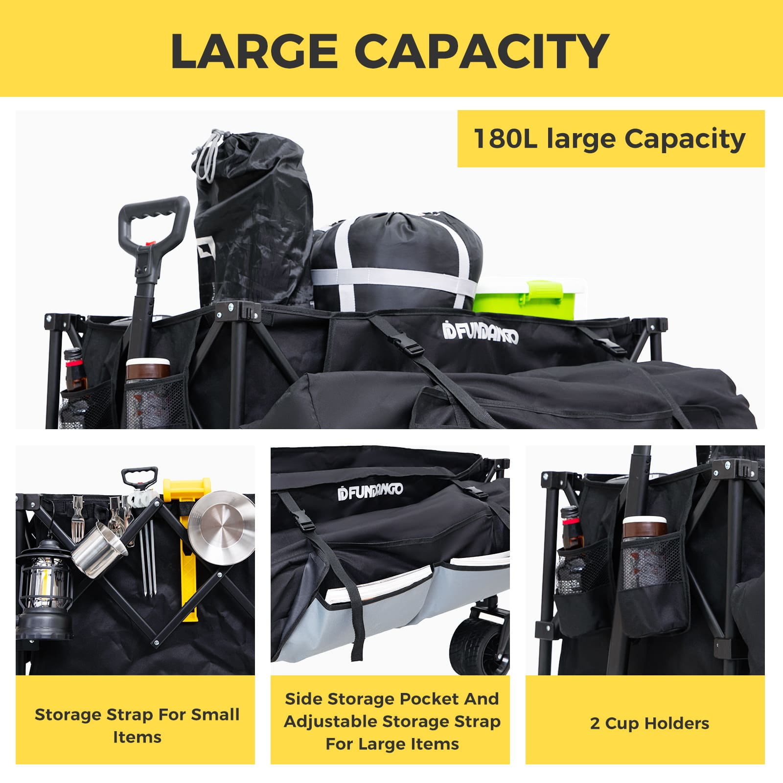 FUNDANGO Heavy-Duty Folding Camping Wagon, 400LBS Large Capacity, Collapsible Design, Ideal for Beach & Garden Use