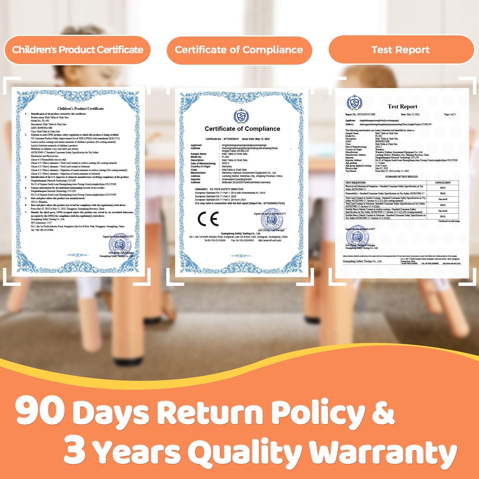 Height Adjustable: table height range from 18.9-23.6in (48-60cm). The chairs are available in 3 heights: 10.2in (26cm), 11in (28cm), 11.8in (30cm). suitable for kids from 3-8 years old tabletop is made of MDF: smooth, durable, drawable & healthy Easy to Wipe: coating of Polyurethane on the table surface makes it more waterproof & crack-proof Amazing Gift for Your Little One Easy to assemble healthy materials: made of MDF and PPC plastic well made and quite smooth Rounded table corners: keep the child safe curved seat back: good for a child’s spine while sitting Adjustable non-slip table and chair feet: help it stand stable on the ground CPC & CE certified weight-bearing capacity: 220lb/ 99kg 【About Our Brand】Funlio table and chairs for kids have been certified by CPC and CE. Safety is the most important thing for children. We promise to do everything we can to make sure that you and your loved ones are 100% satisfied with your purchase. If for any reason you’re not satisfied with your purchase, please feel free to contact us. Tips: Cleaning with a damp cloth is recommended. Please be careful during installation, and do not leave children alone.