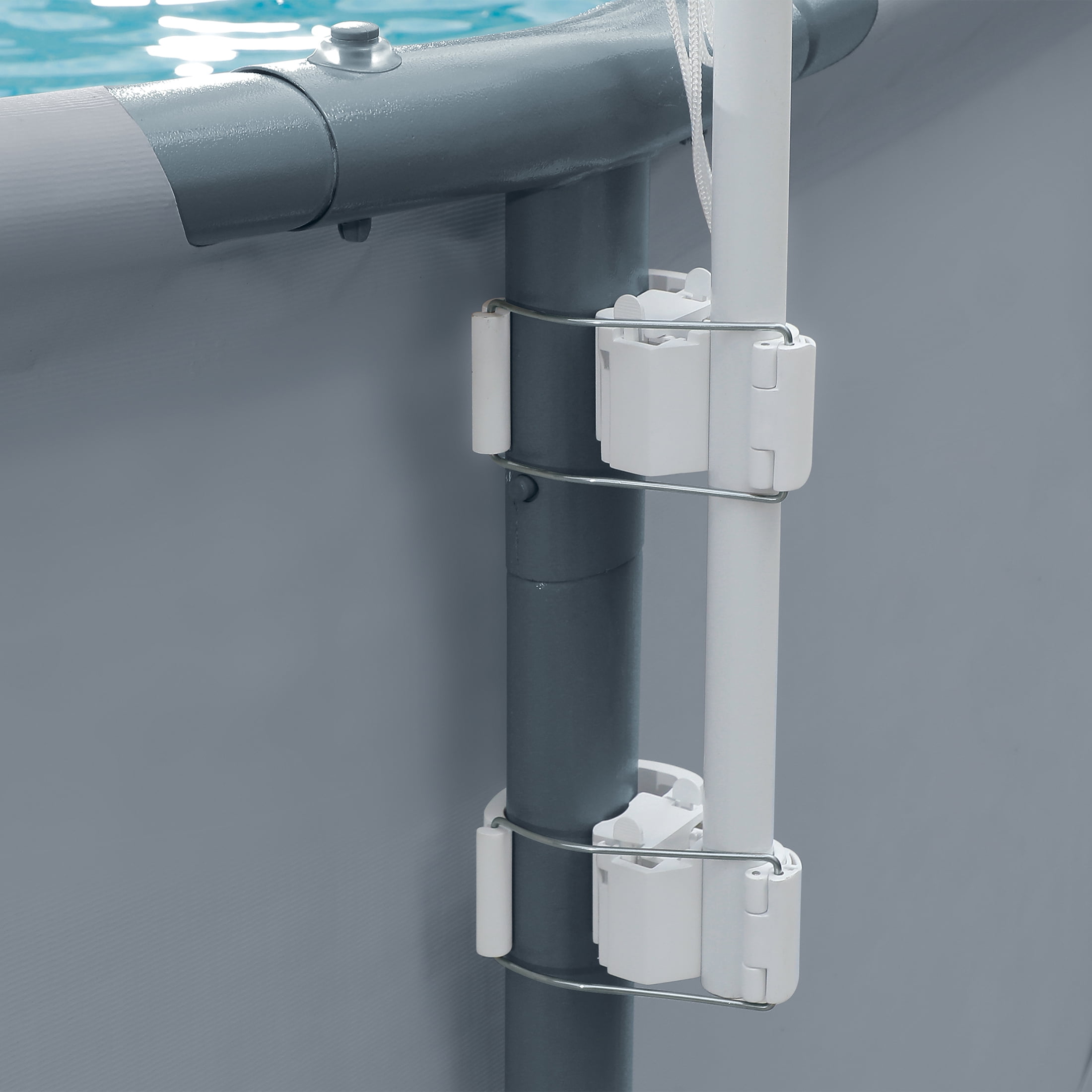 Shoot and score your way to fun interactive games with the Funsicle Basketball Pool Game Set. This pool sports set includes an inflatable basketball and basketball hoop with PVC backboard and rim. Ideal for 8 ft to 26ft metal frame swimming pools, it is easy to set up. Just use the metal poles and plastic fixing clips to place and secure the basketball game. It will attach securely to the pool’s frame, giving it the stability for your game-winning shot. The backboard is made from durable Get ready for summer backyard game time with this entertaining Funsicle Basketball Pool Game Set.