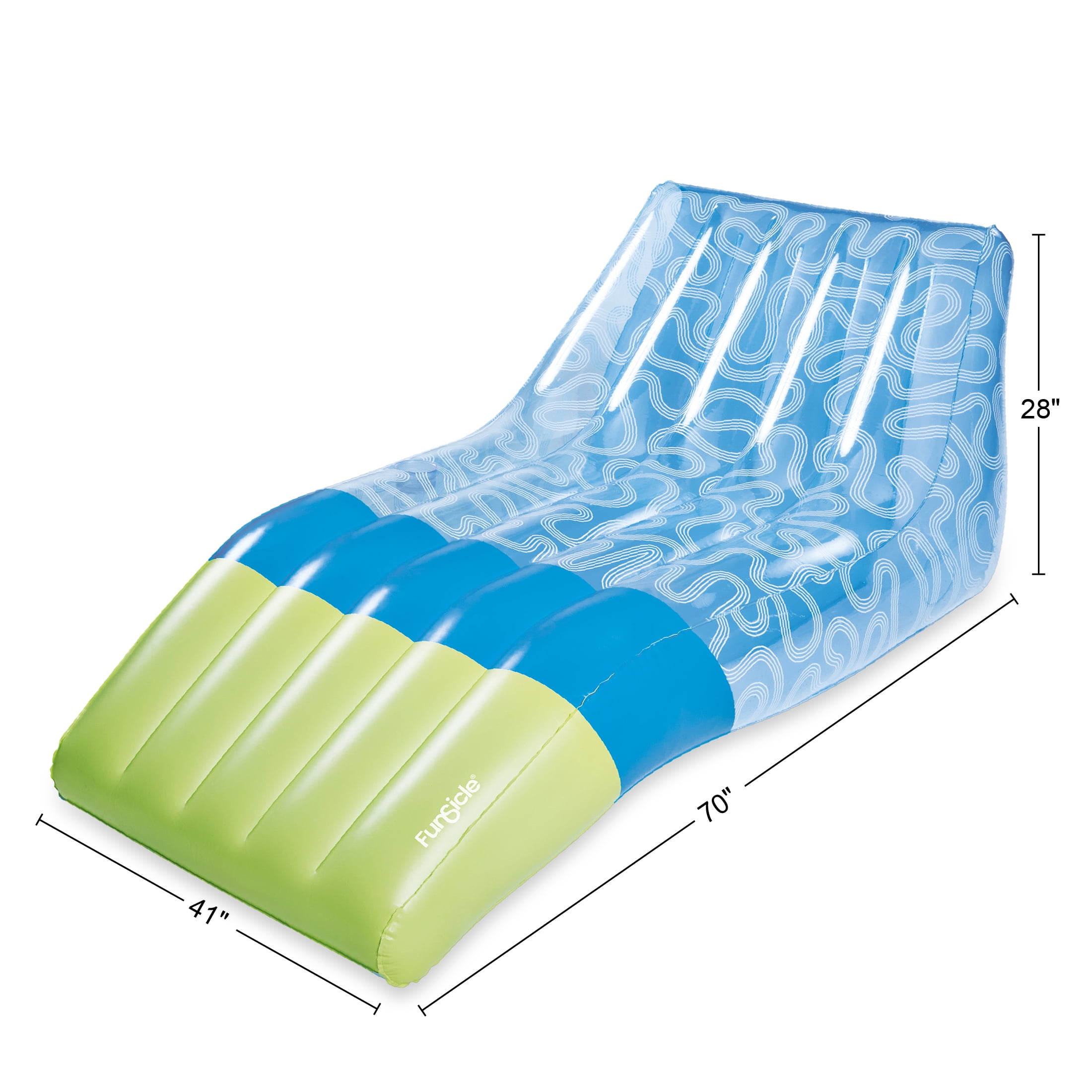 The Funsicle Squiggle Chaiser Lounge is the go-to inflatable pool float for anybody wanting to relax on the water. You can stretch back and chill, while staying completely dry. Available in a bright unisex color and trendy pattern design, you stand out on the water. This inflatable water chair provides extra back support for all types of bodies for a comfy ride. Easy-to-inflate, all adults looking for the most relaxing swimming pool float will love the Funsicle Squiggle Chaiser Lounge.