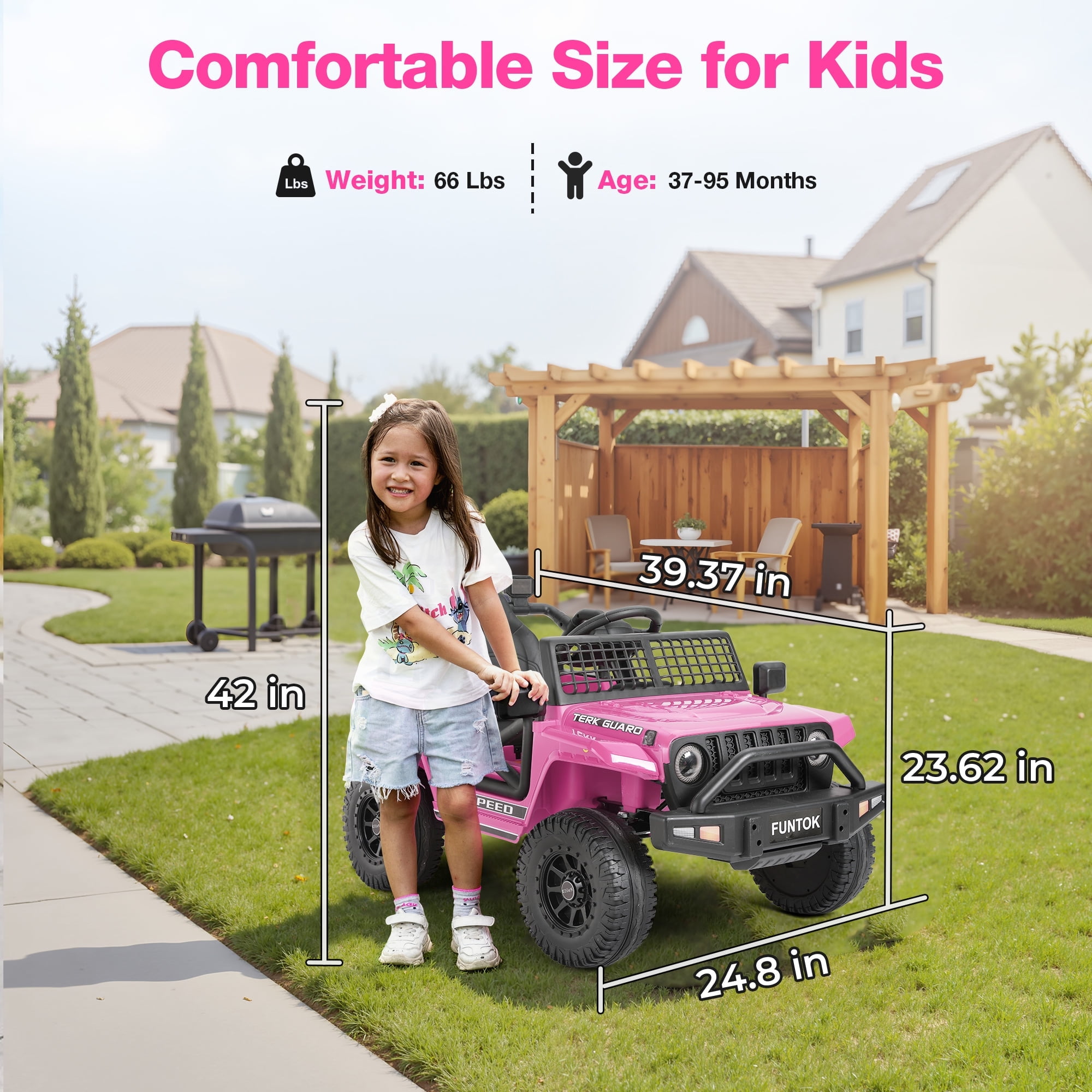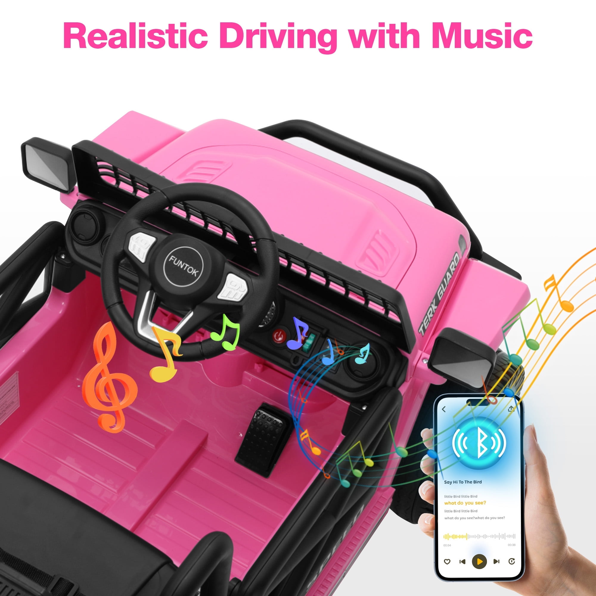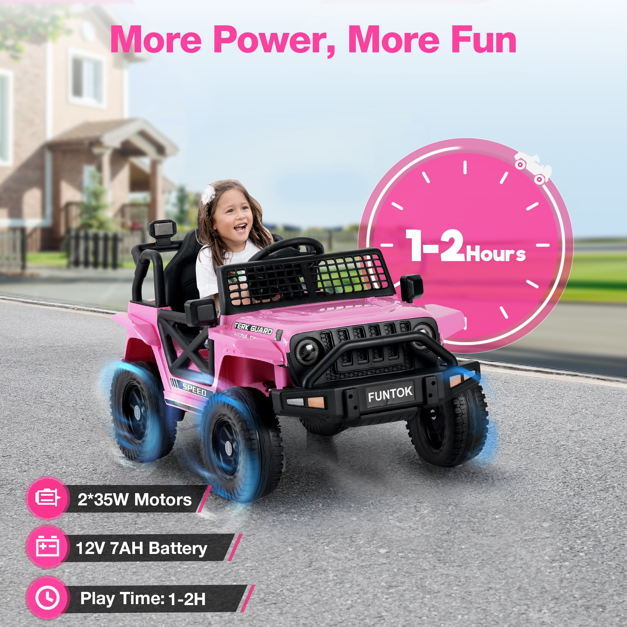 FUNTOK 12V 7AH Kids Ride on Toys, Electric Ride on Car Truck Battery Powered Vehicle w/ Parent Remote Control, Bluetooth, Spring Suspension, MP3 Player & LED Lights, 3 Speeds,Pink